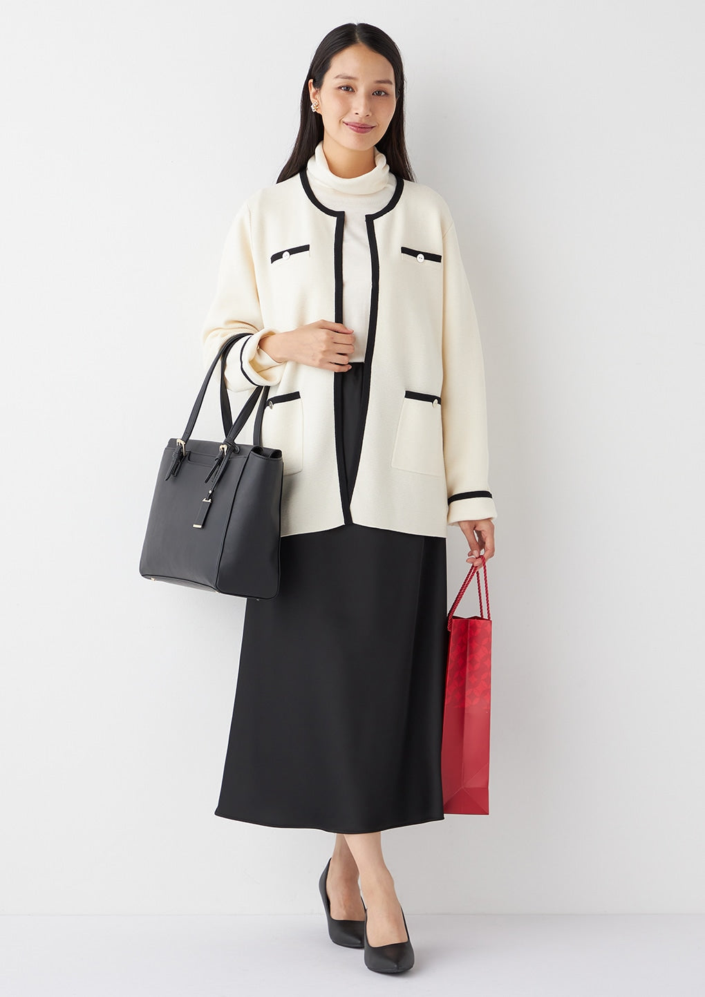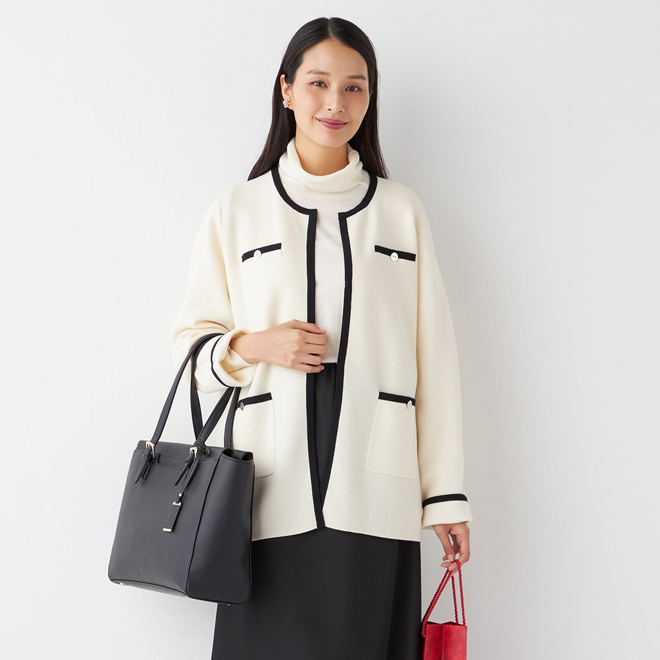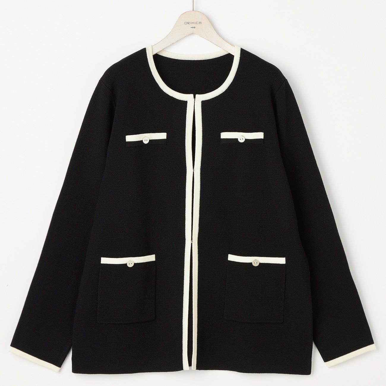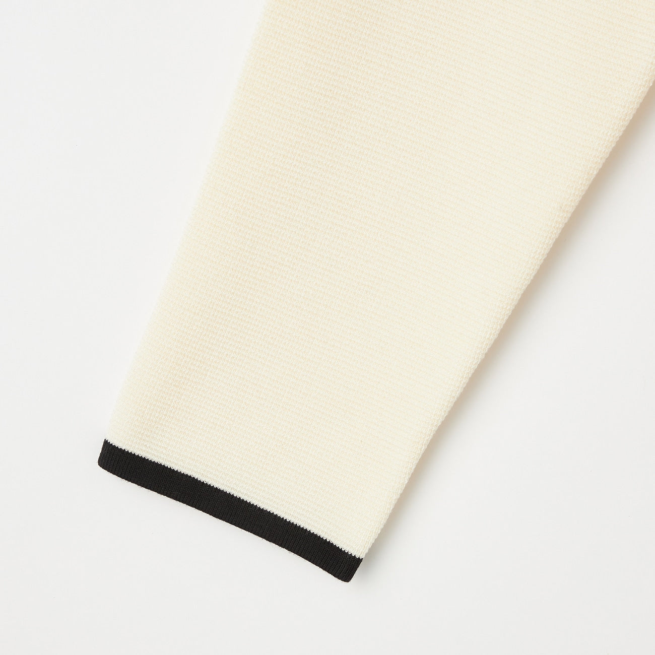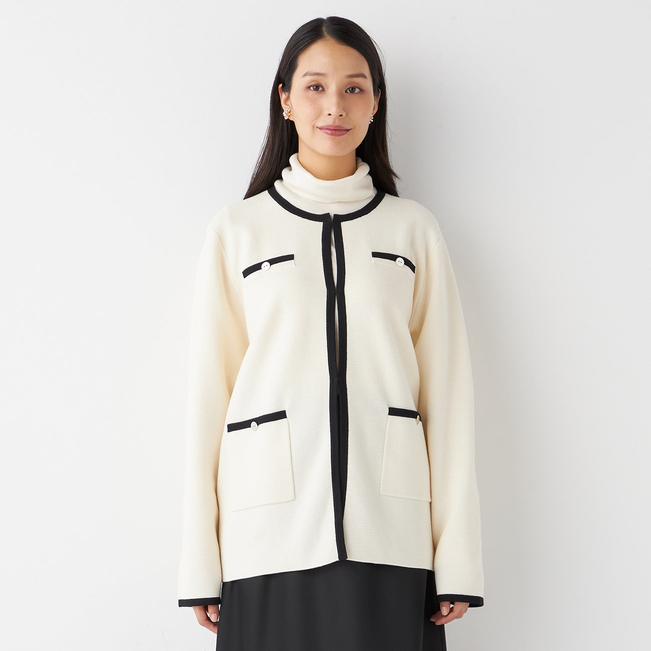 - 前襟鉤眼開關方便穿著,並採用獨特的 Milano 羅紋和褶皺編織圖案。