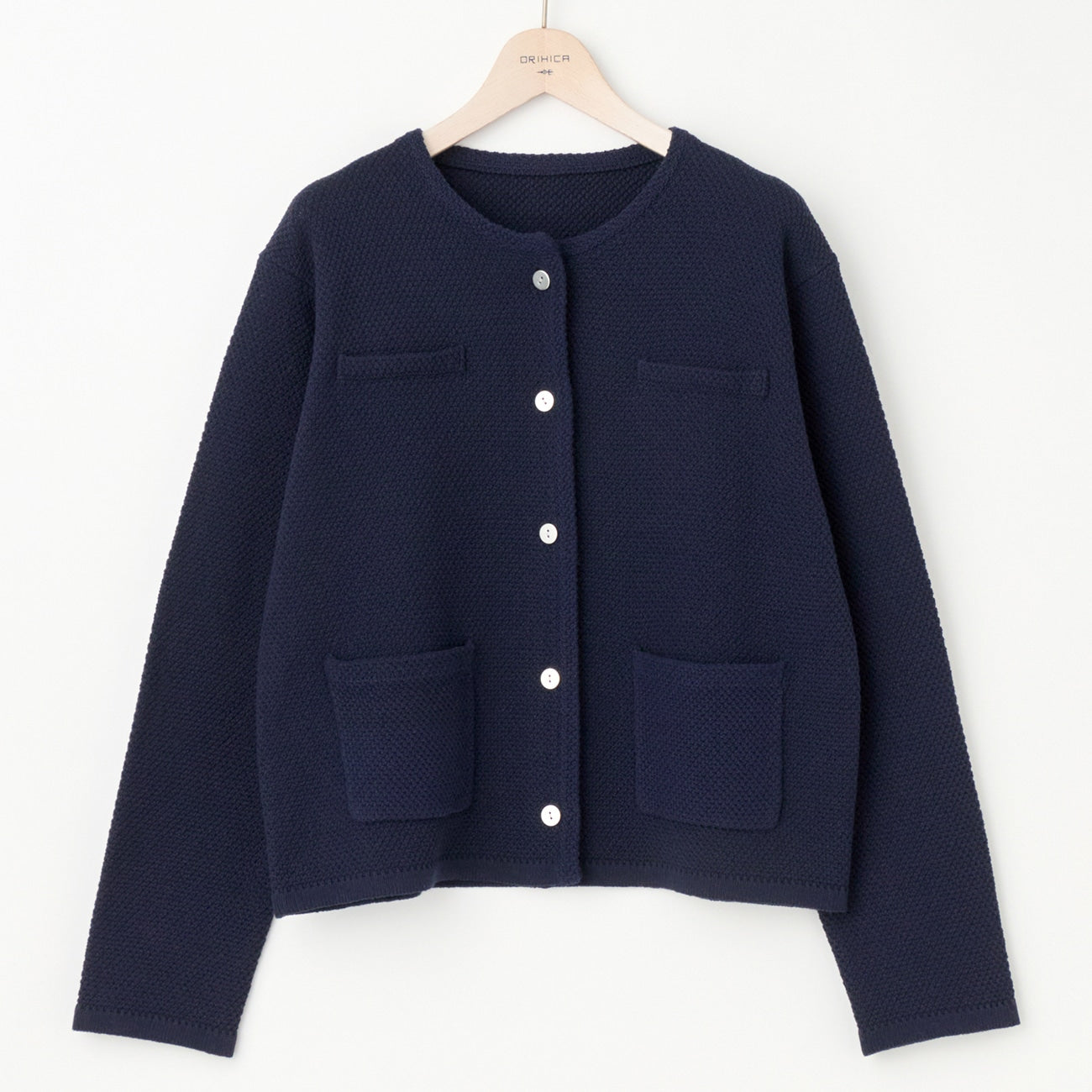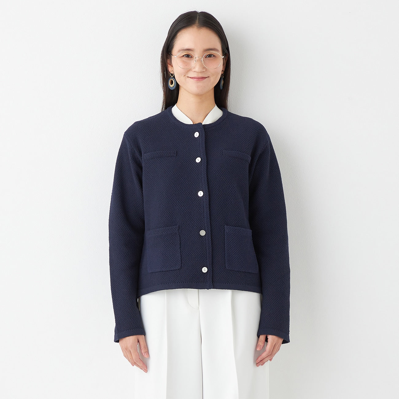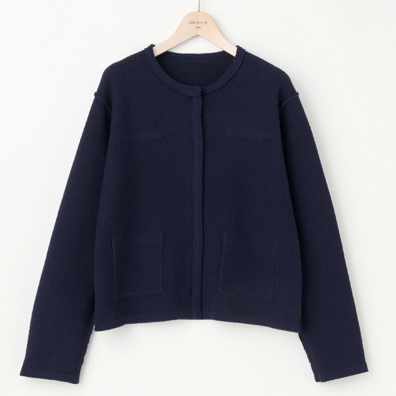A versatile tweed-style knit jacket suitable for both professional and casual wear.