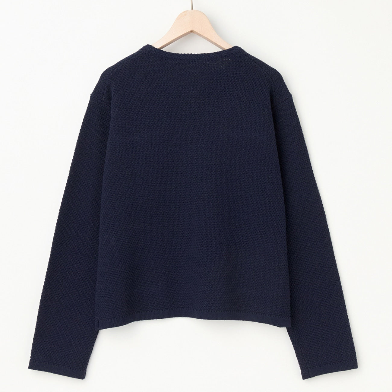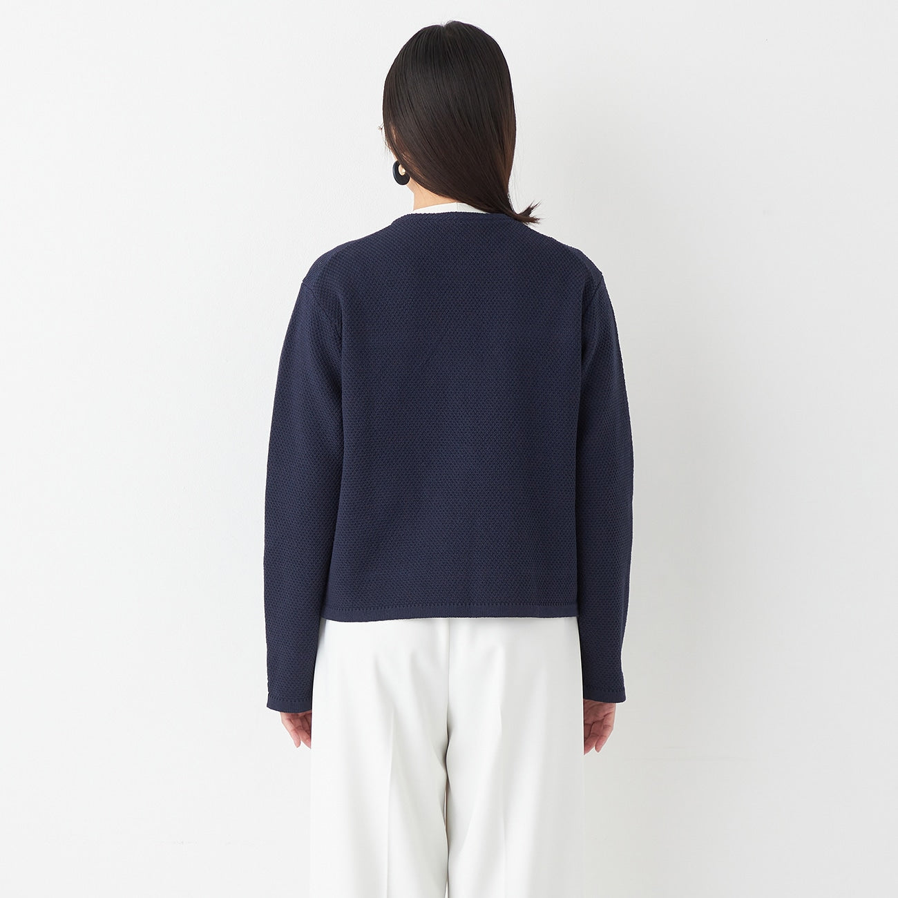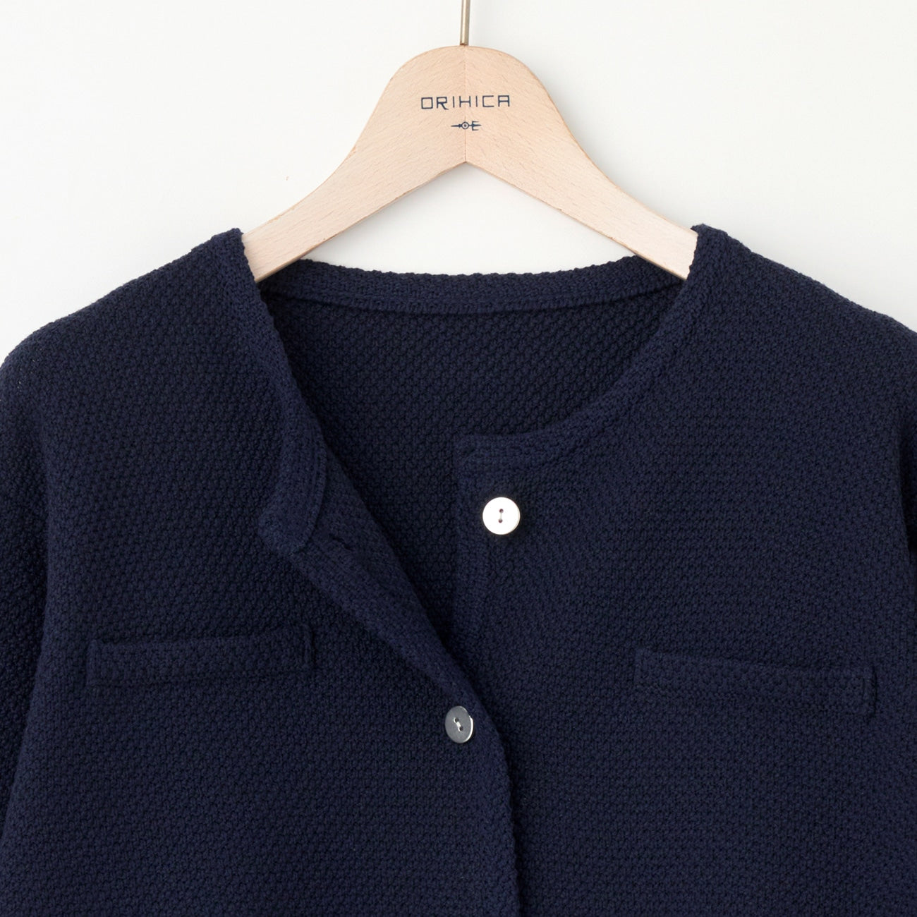 A versatile tweed-style knit jacket suitable for both professional and casual wear.