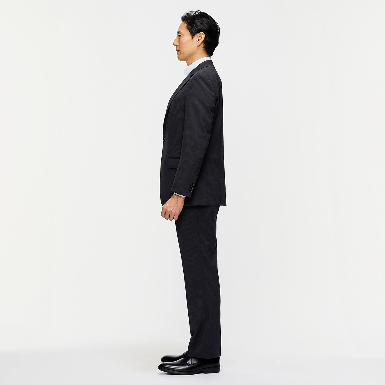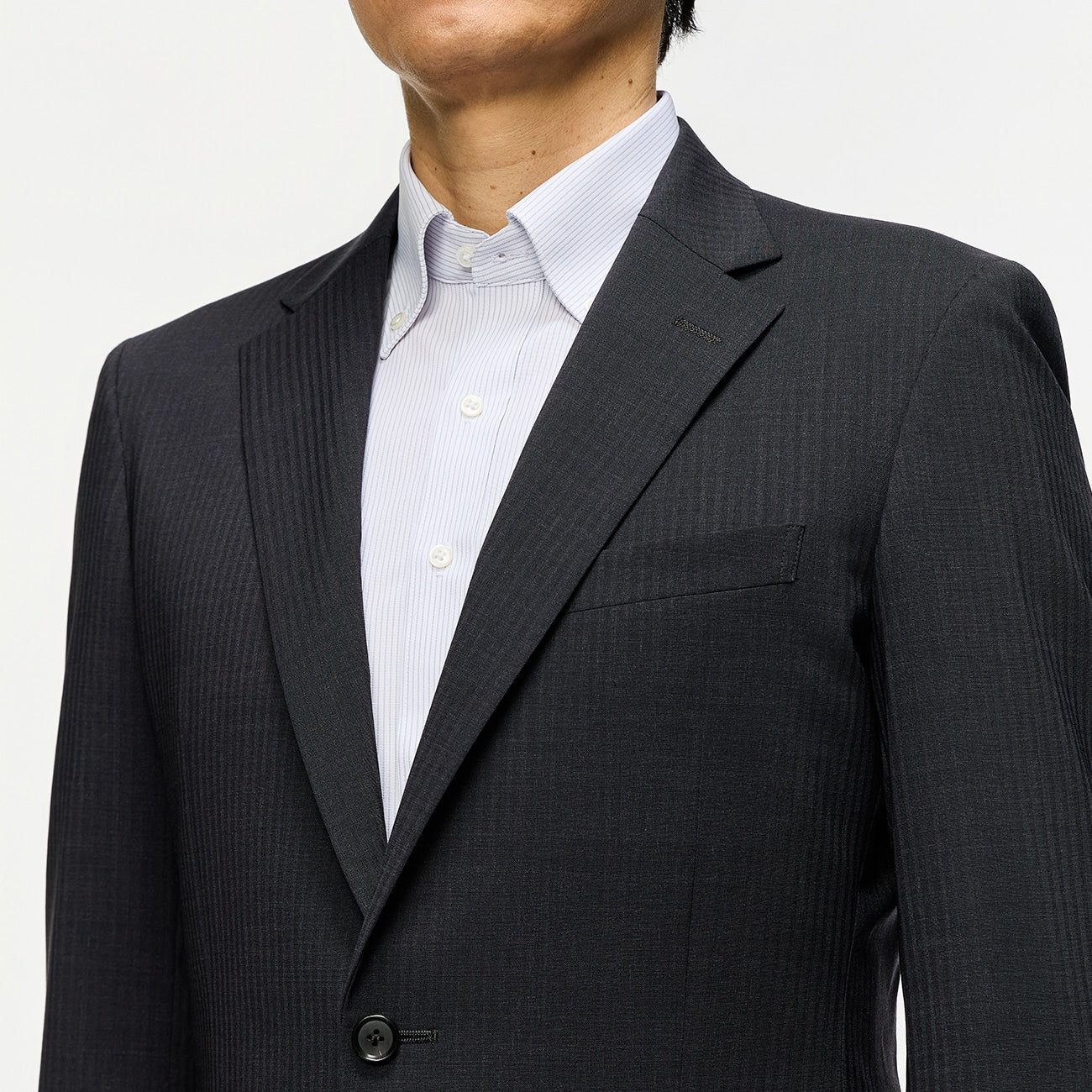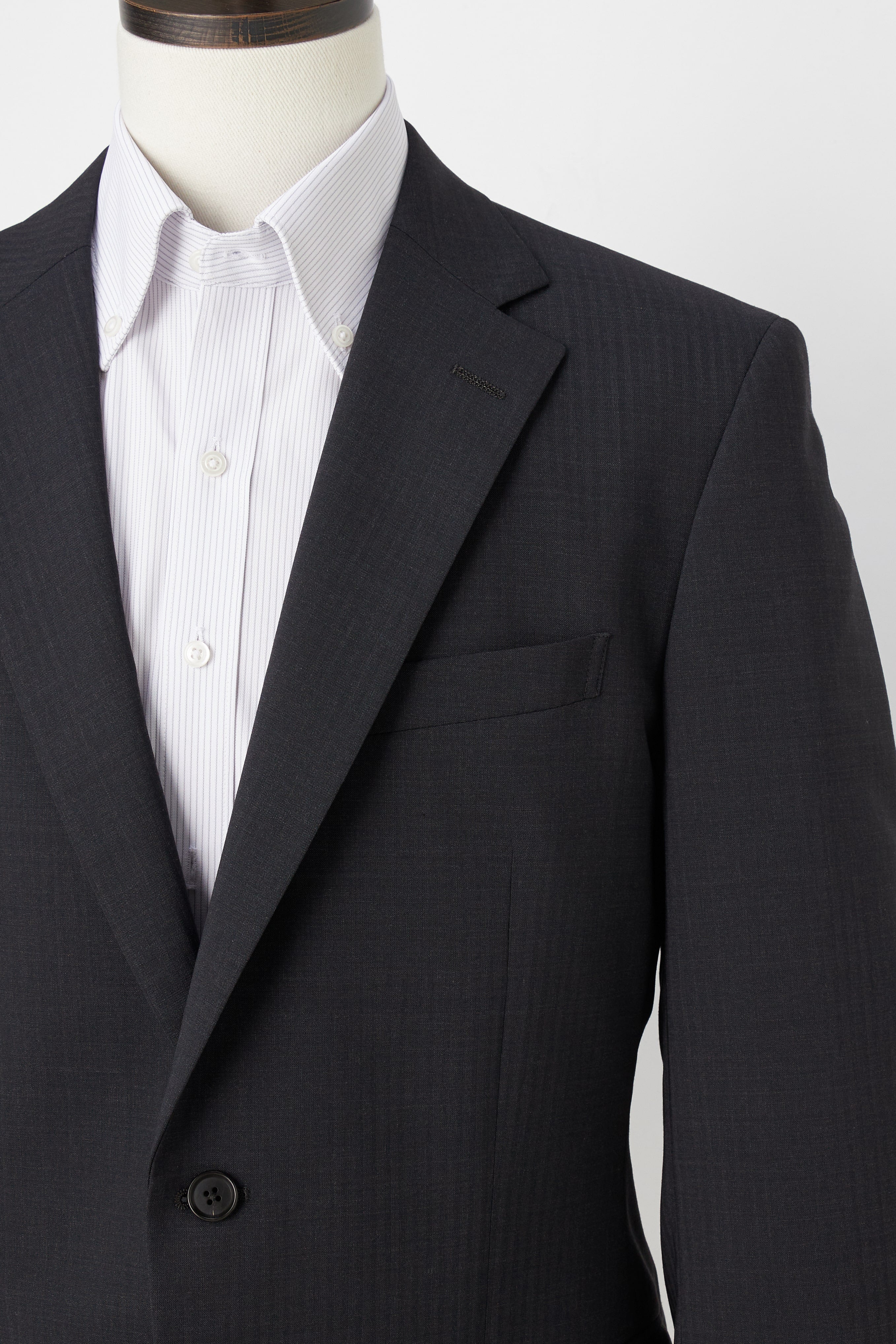 ・內裏與墊肩極簡、輕量化,並維持胸前結構感。穿感更加輕盈薄透的同時,依舊保有西裝的修身功能。
