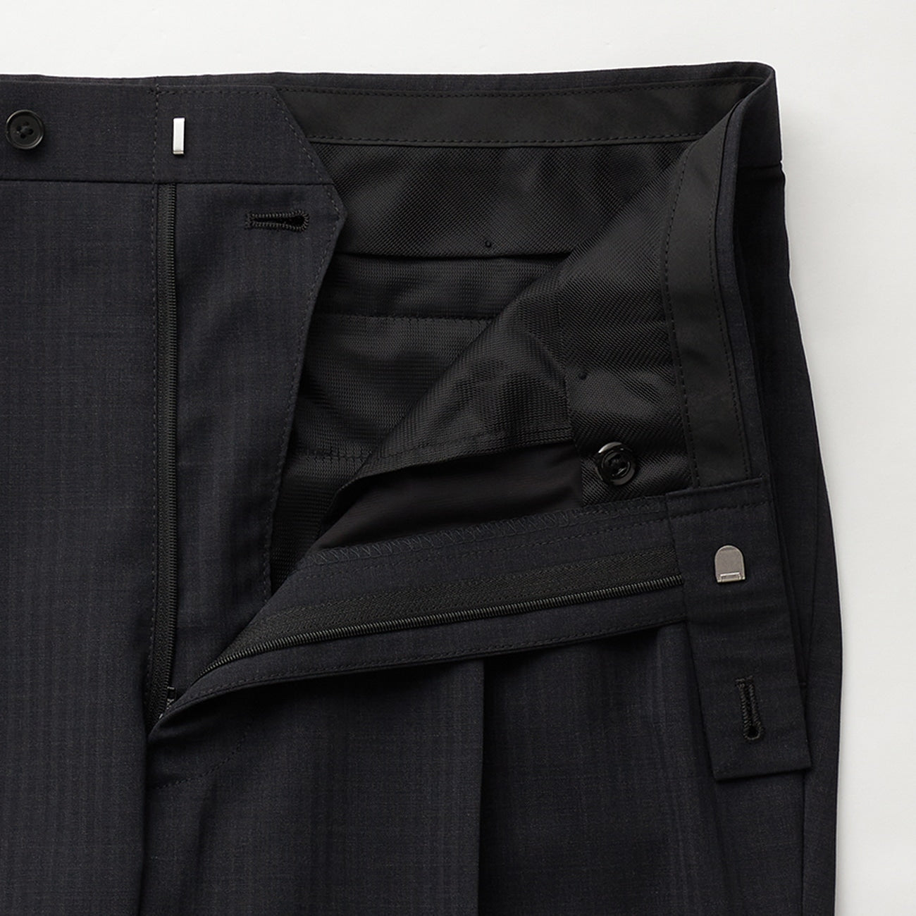 請注意:西裝褲腳須另行包邊車縫,請依個人需求修改。