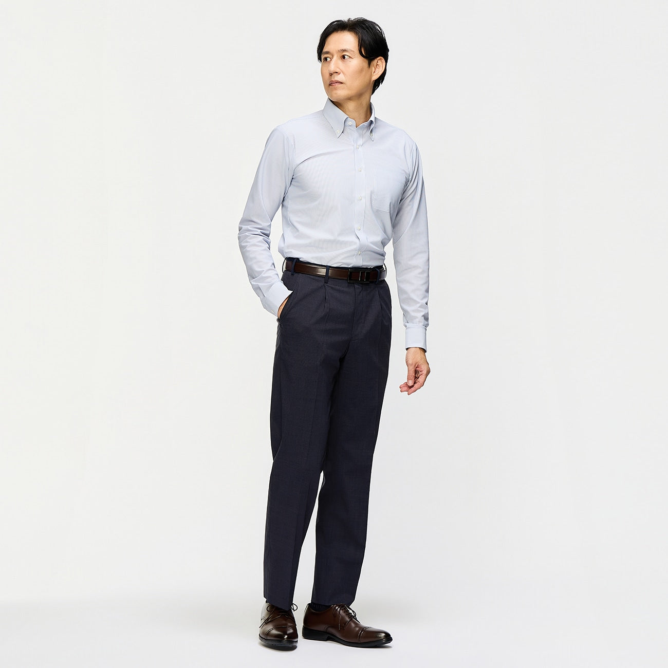 單褶西裝褲/網眼布料內裏/網眼布料口袋/腰圍不緊繃