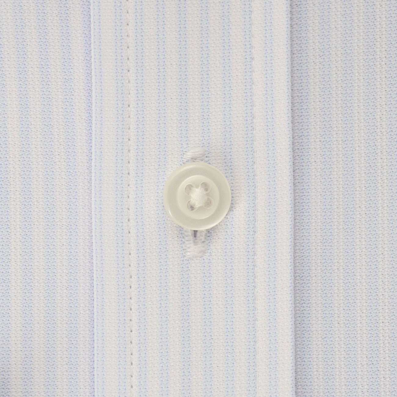 领口前端的钮扣设计,让衣领更加立体,不管有没有领带都能展现俐落领型。衣领衬里特殊点缀,细节更显时尚,也让汙渍不易显现。