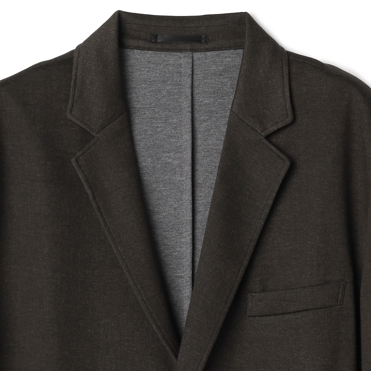 针织素材轻量、弹性佳、多向角度皆能伸缩,穿着舒适。表面印纹则为外套带来更多细节,展现精致品味。