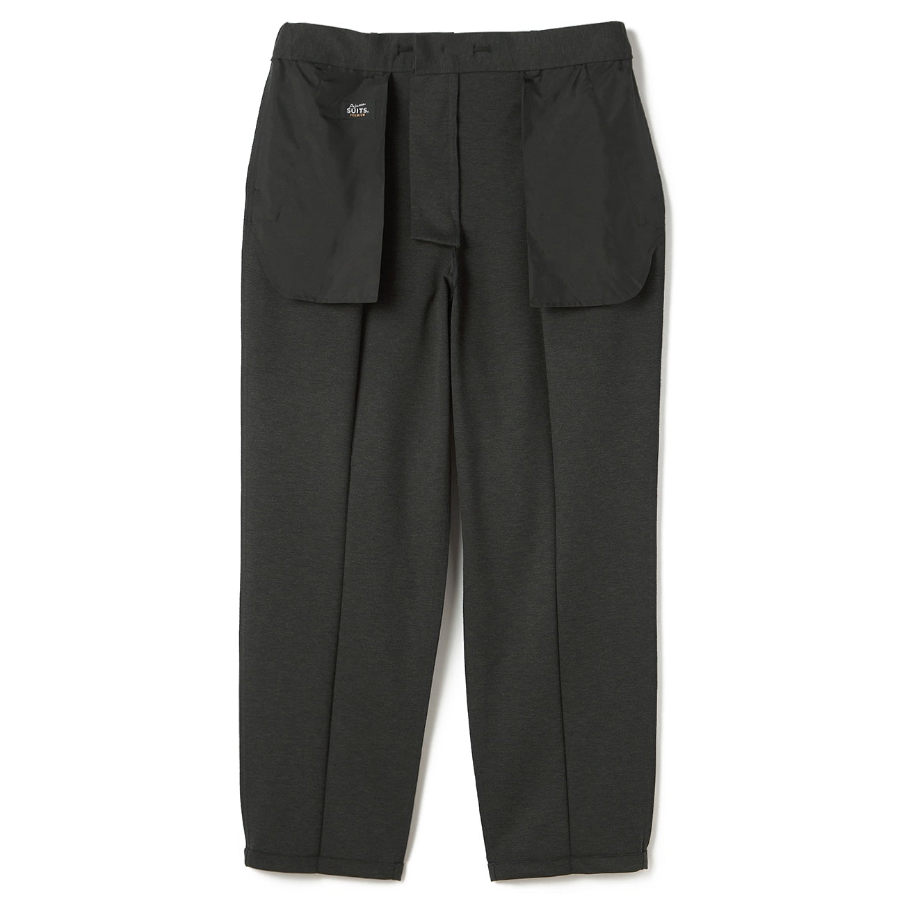无摺、裤脚已包边、无衬里、腰围加长设计、腰侧、后臀有口袋、附腰部调节绳
