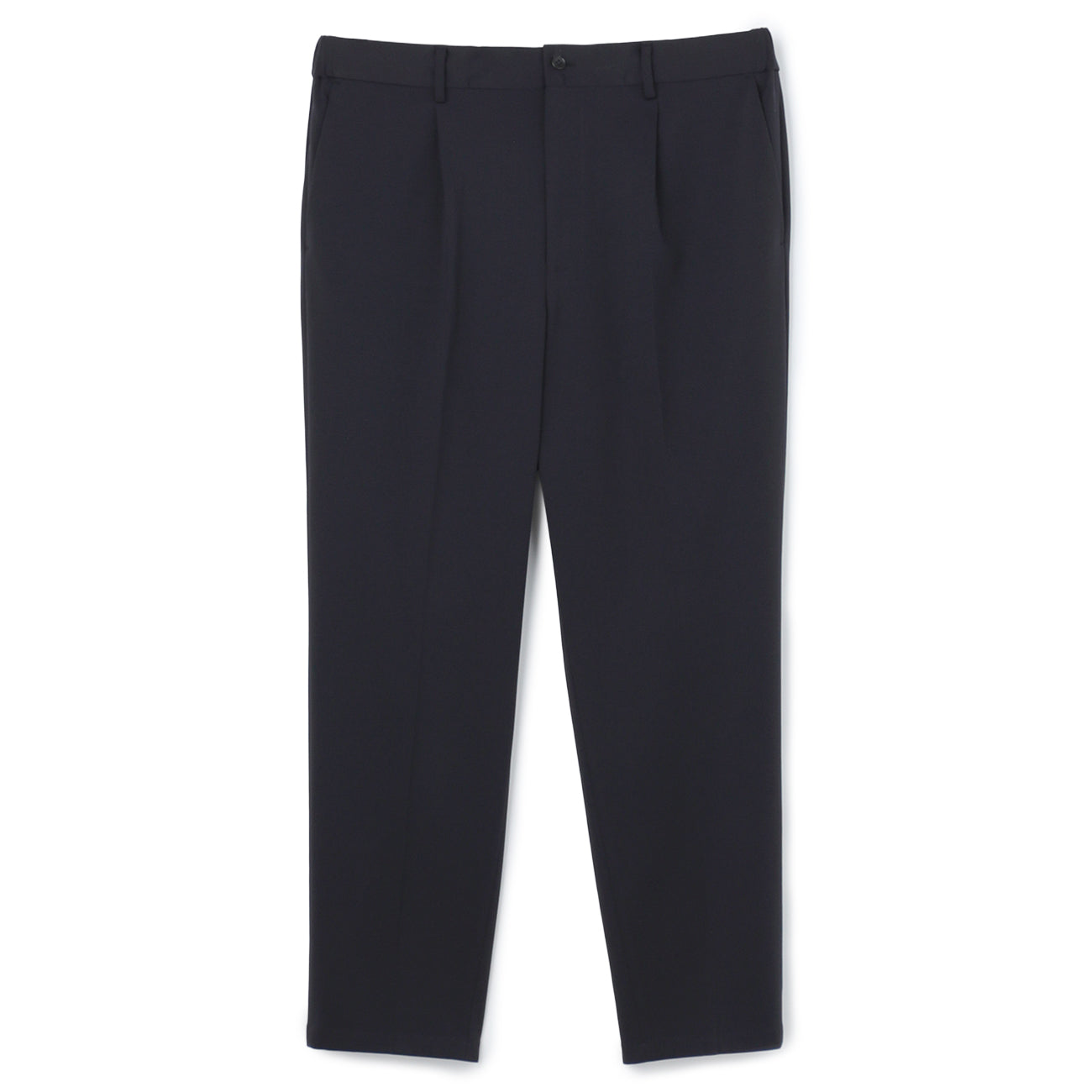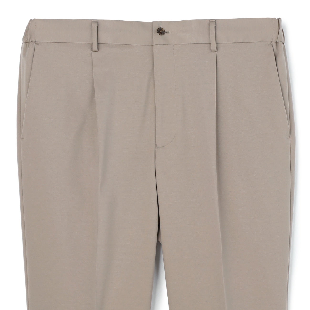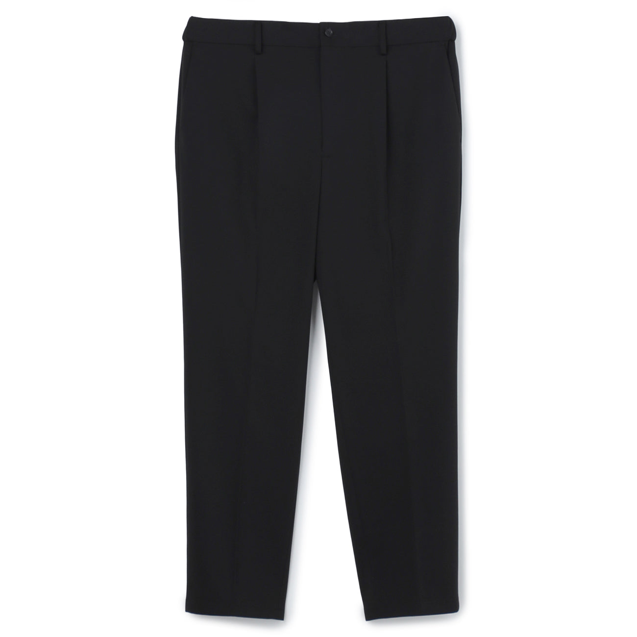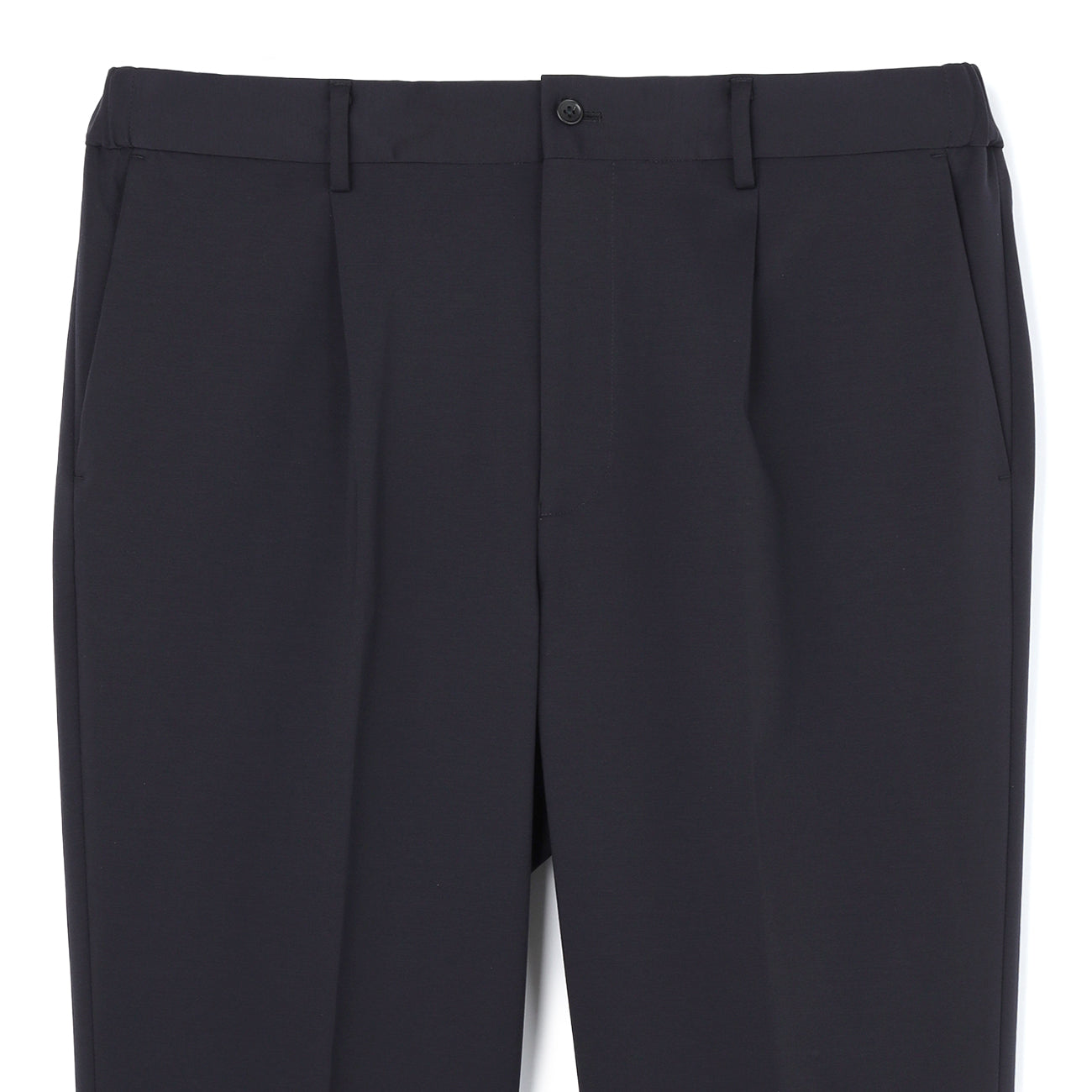 Pre-hemmed, unlined, Tengu button, waist pockets, hip pockets, inner drawstring, comfortable waistband, crease processing
