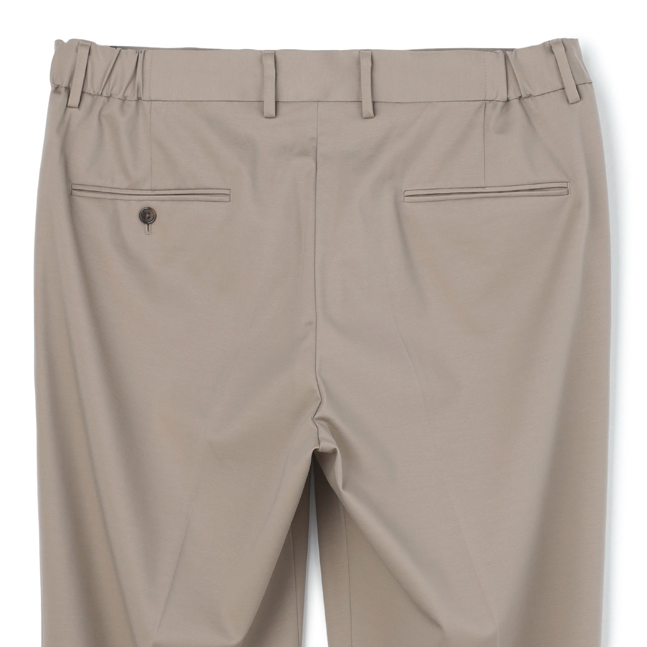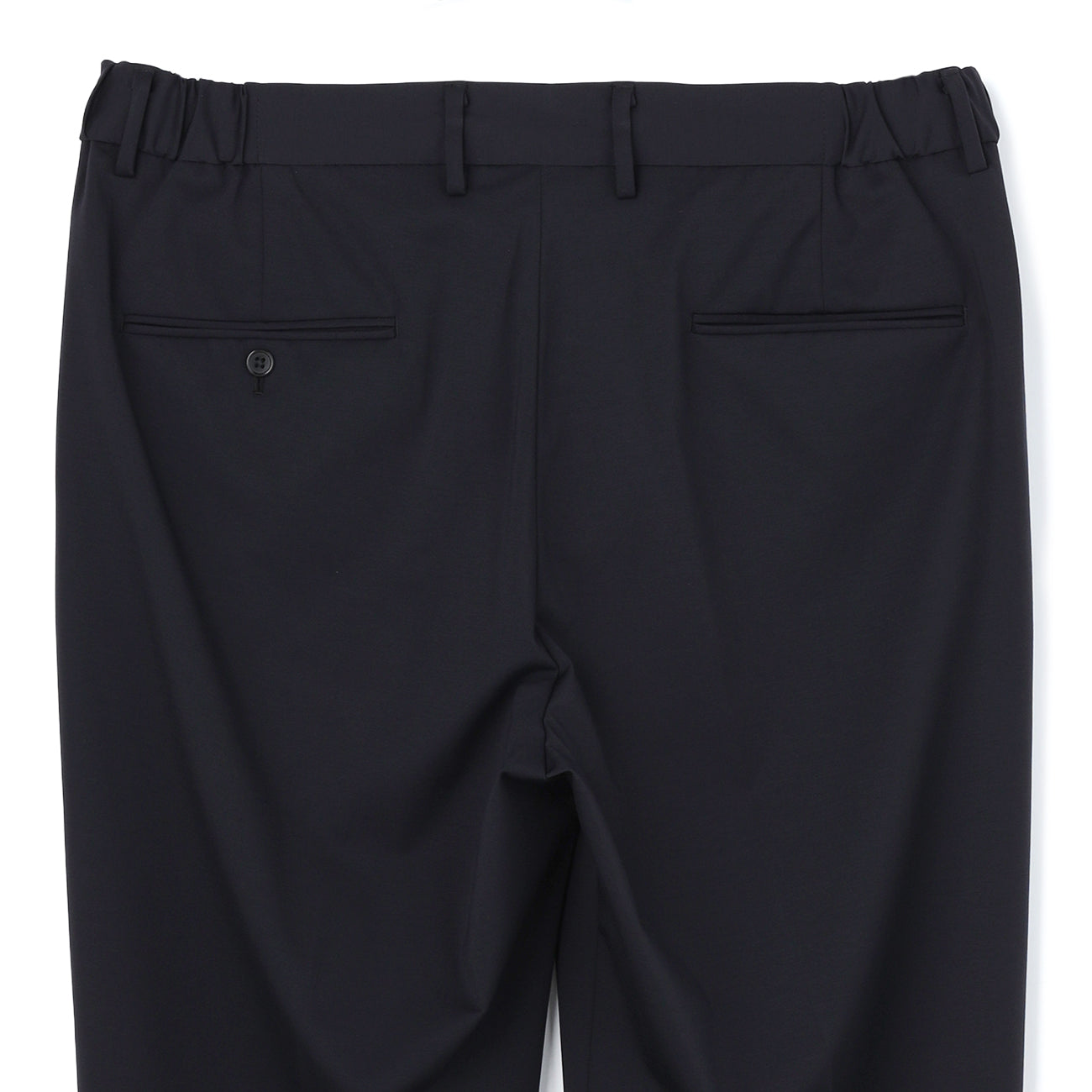 ・中央壓線讓腿型修長俐落,後臀口袋雙滾邊設計,呈現西裝褲精緻質感。