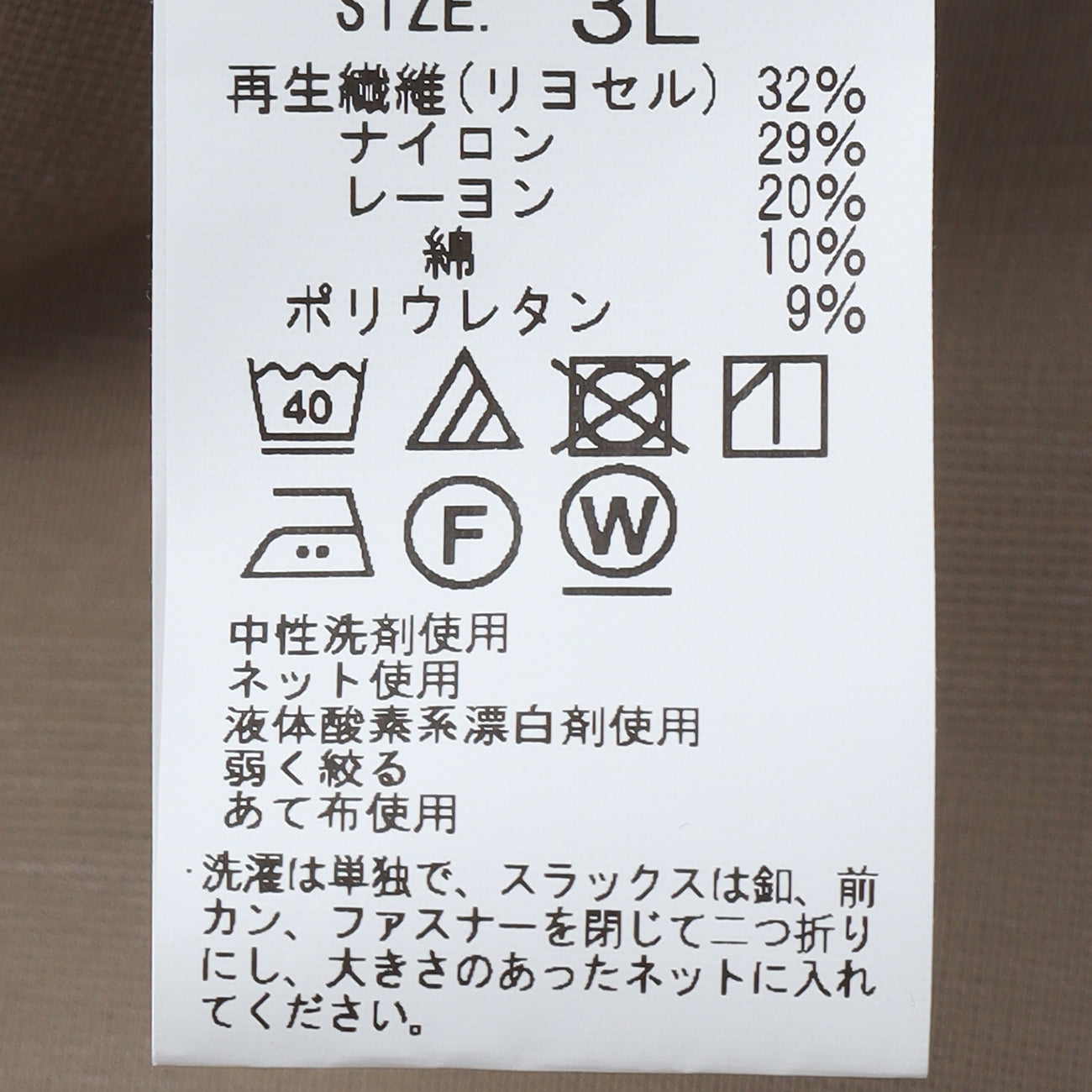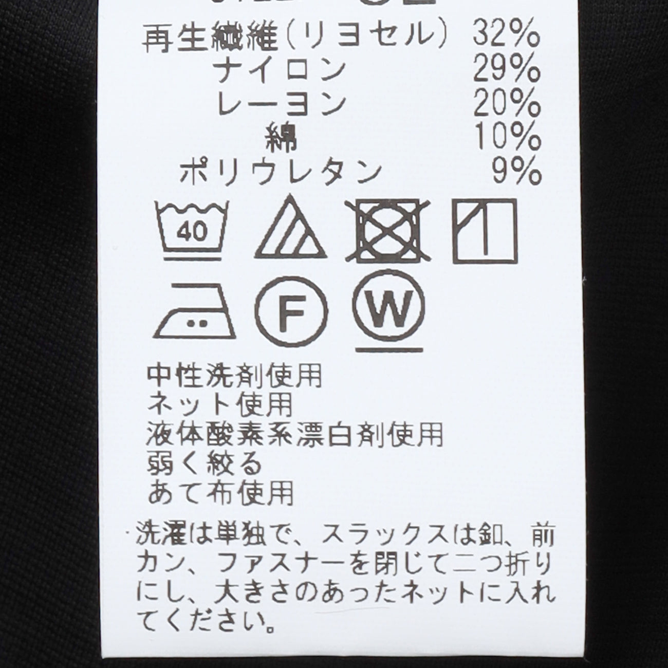 再生纖維(萊賽爾)32%、尼龍29%、嫘縈20%、棉10%、聚氨酯9%