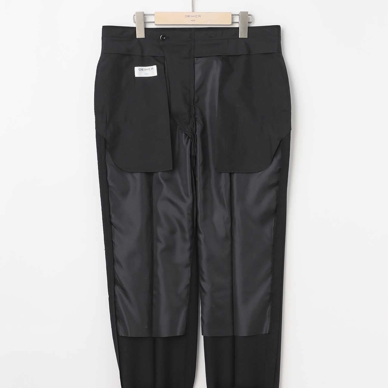 请注意:裤脚须另行包边车缝,请依个人需求修改。