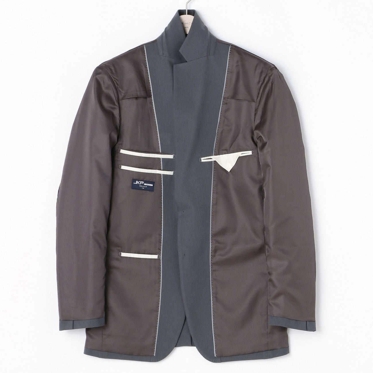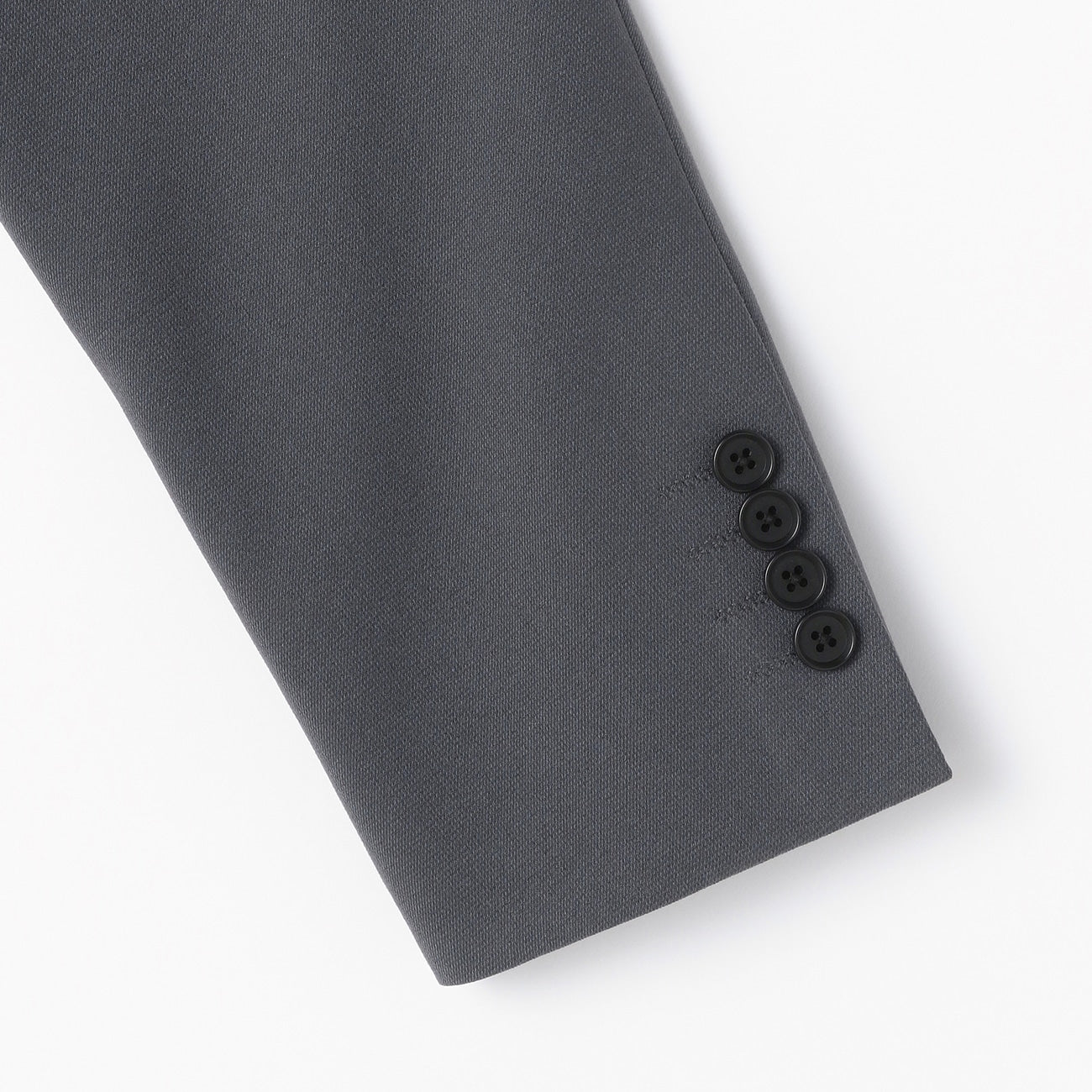・西裝外套:2顆鈕扣、背開中叉、袖口假扣眼、半內裏。西裝褲:無摺。