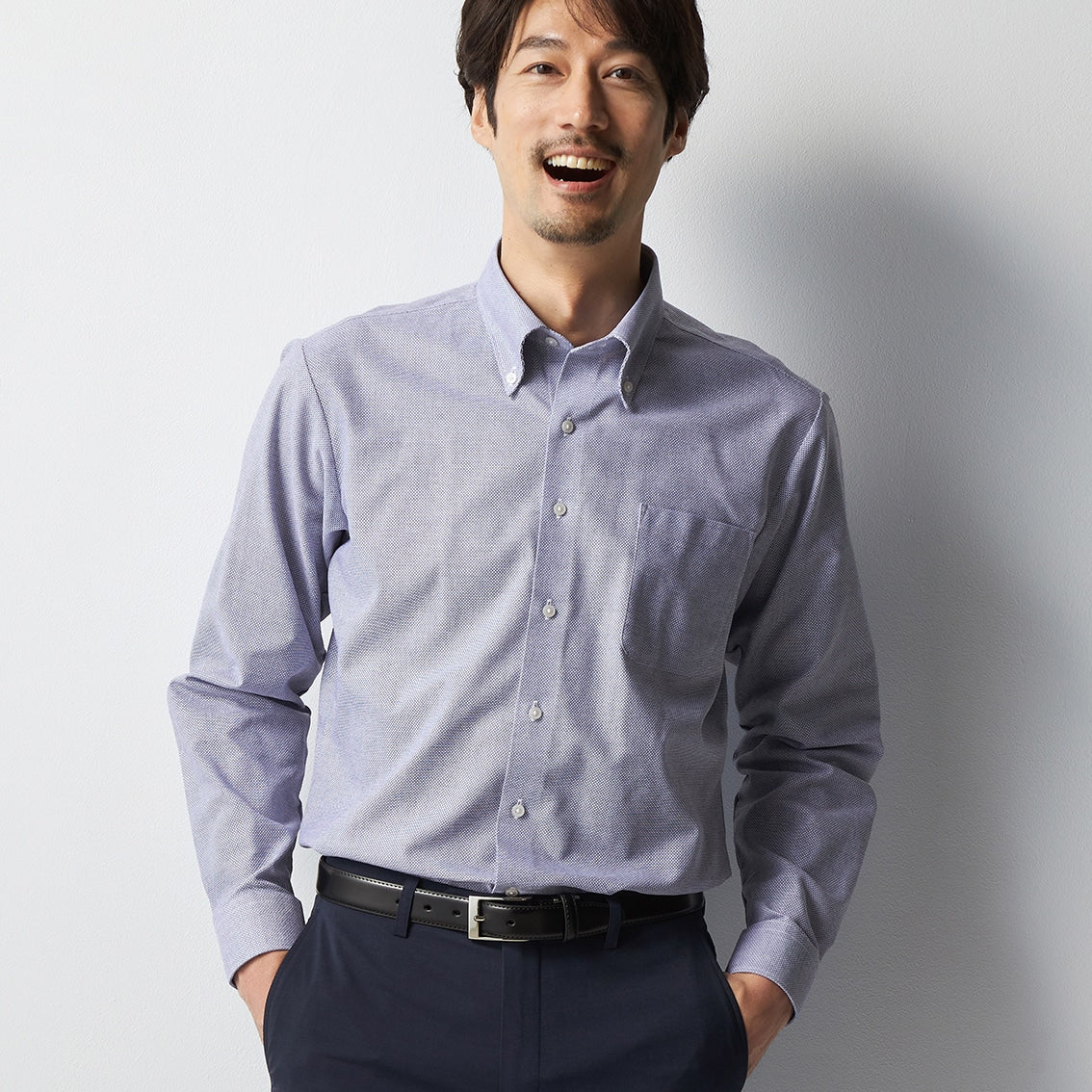 ・細緻織紋膚觸乾爽,同時為襯衫外觀增添細節。