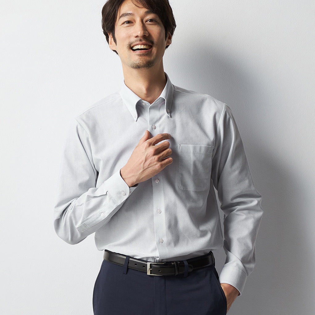 ・細緻織紋膚觸乾爽,同時為襯衫外觀增添細節。