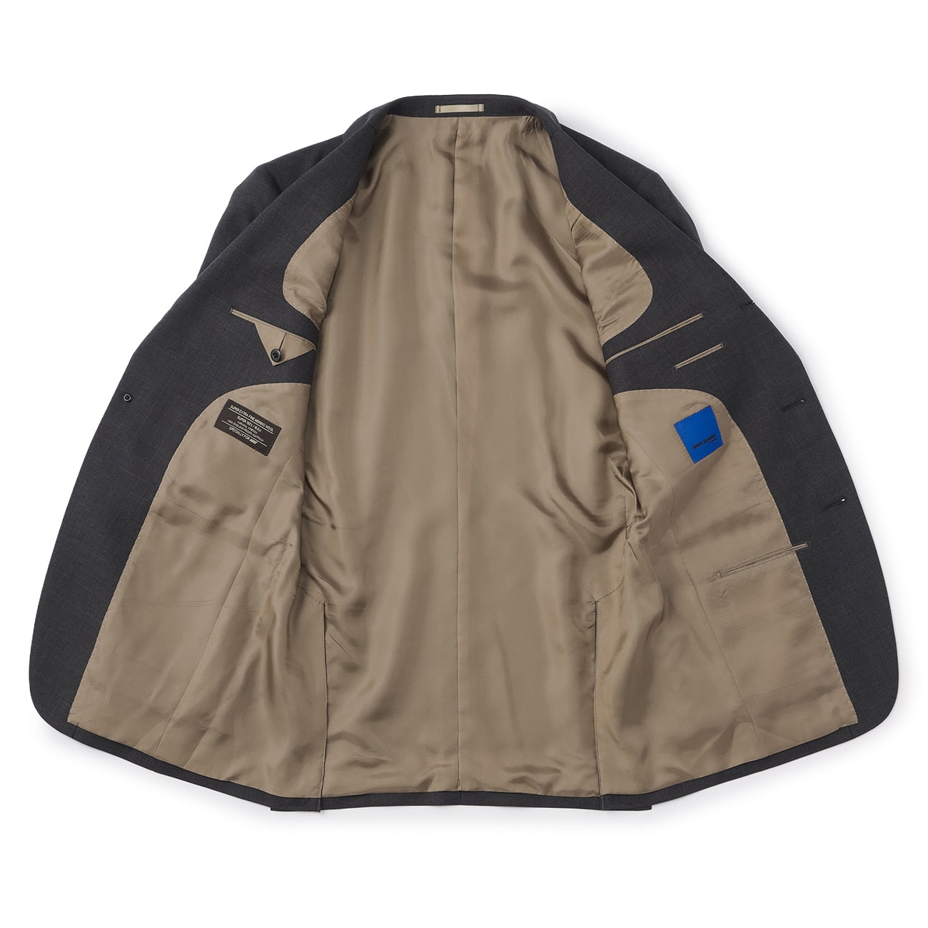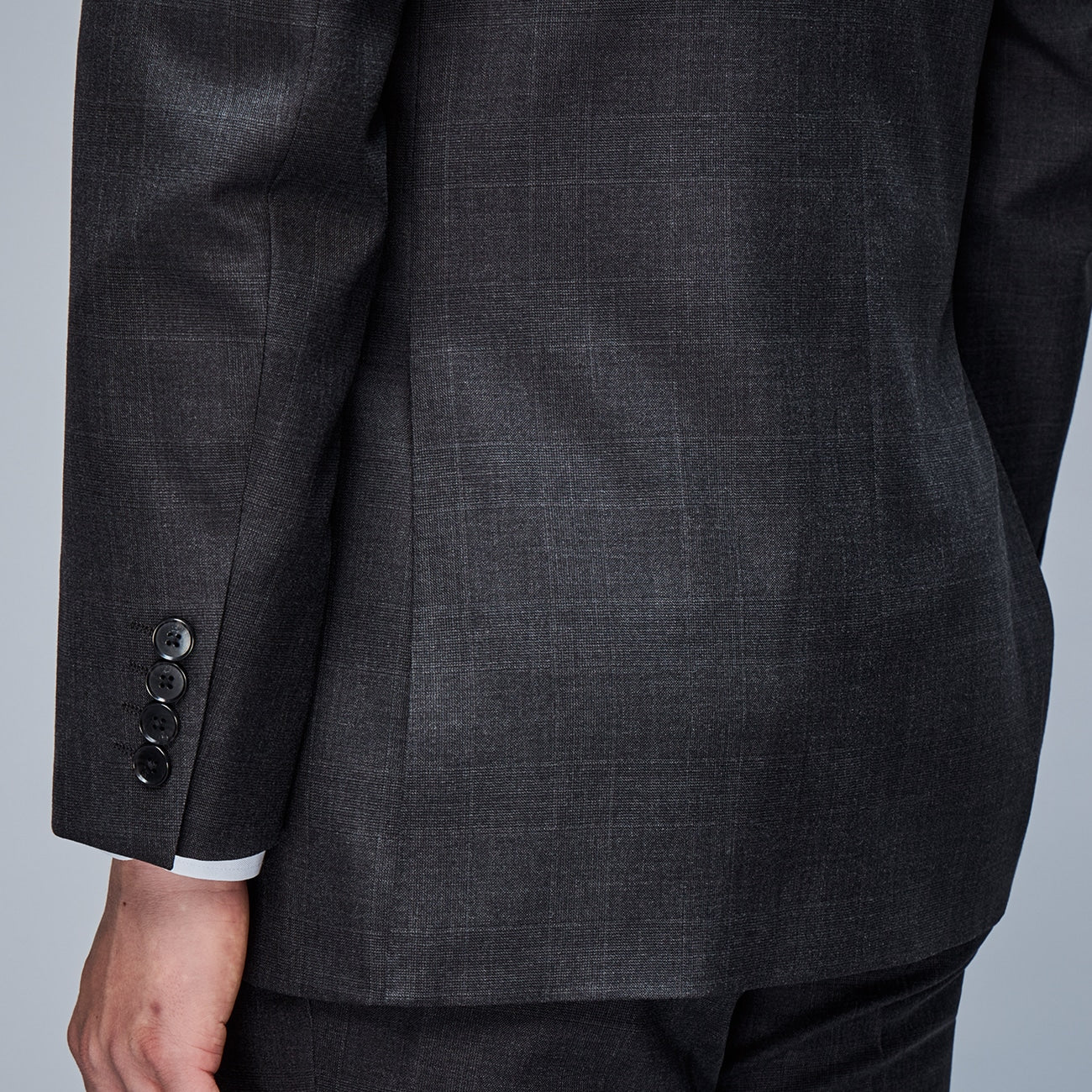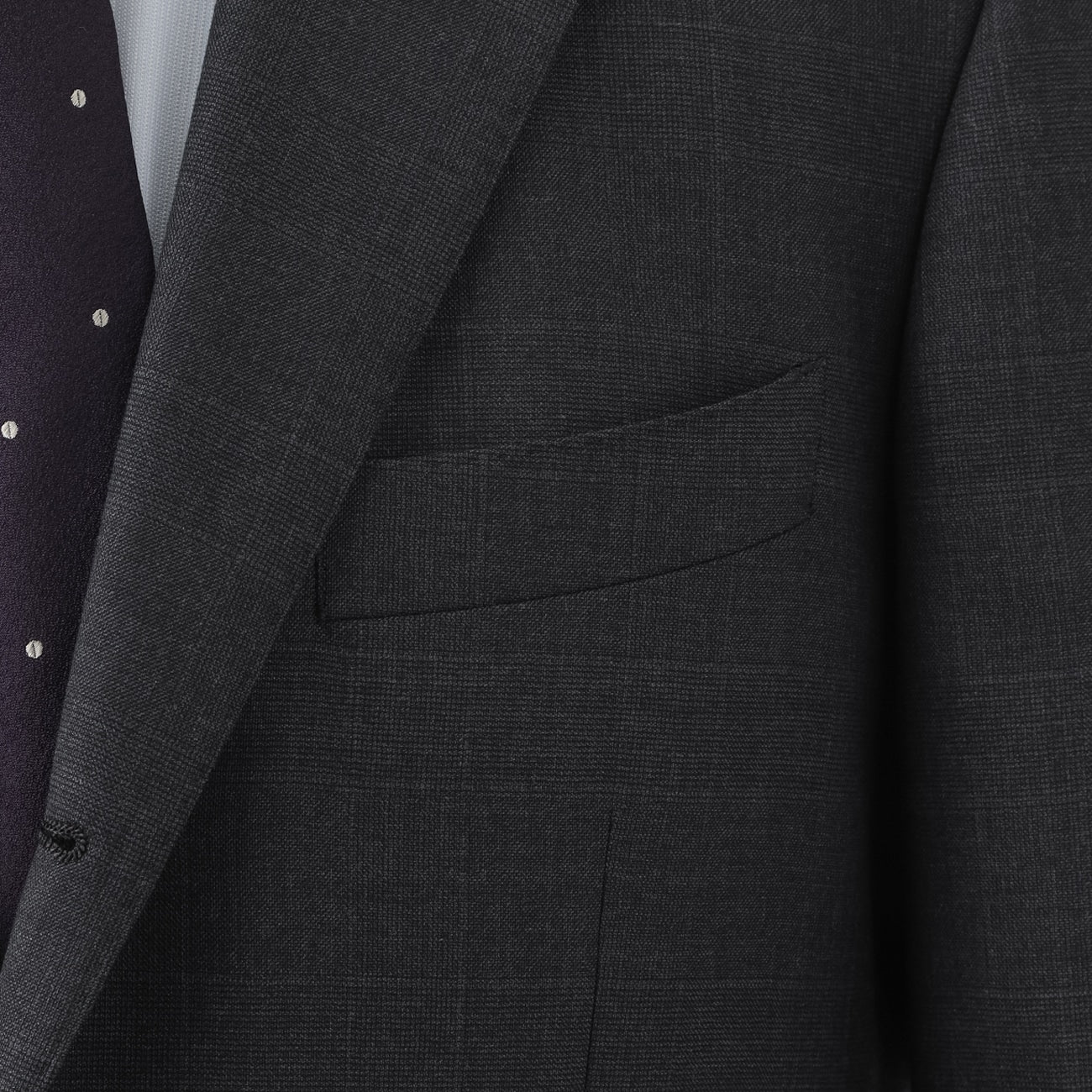 西装外套:3扣2(3-roll-2)、双开衩、AMF缝线、全衬里、多个口袋