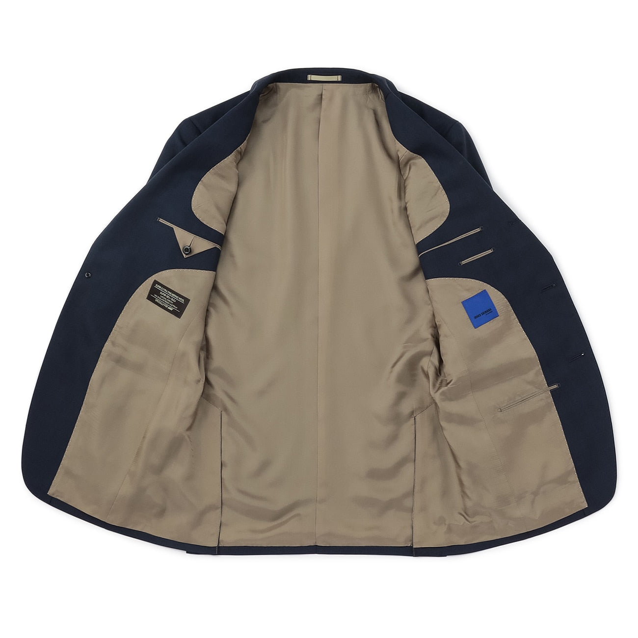 西装外套:3扣2(3-roll-2)、双开衩、AMF缝线、全衬里、多个口袋
