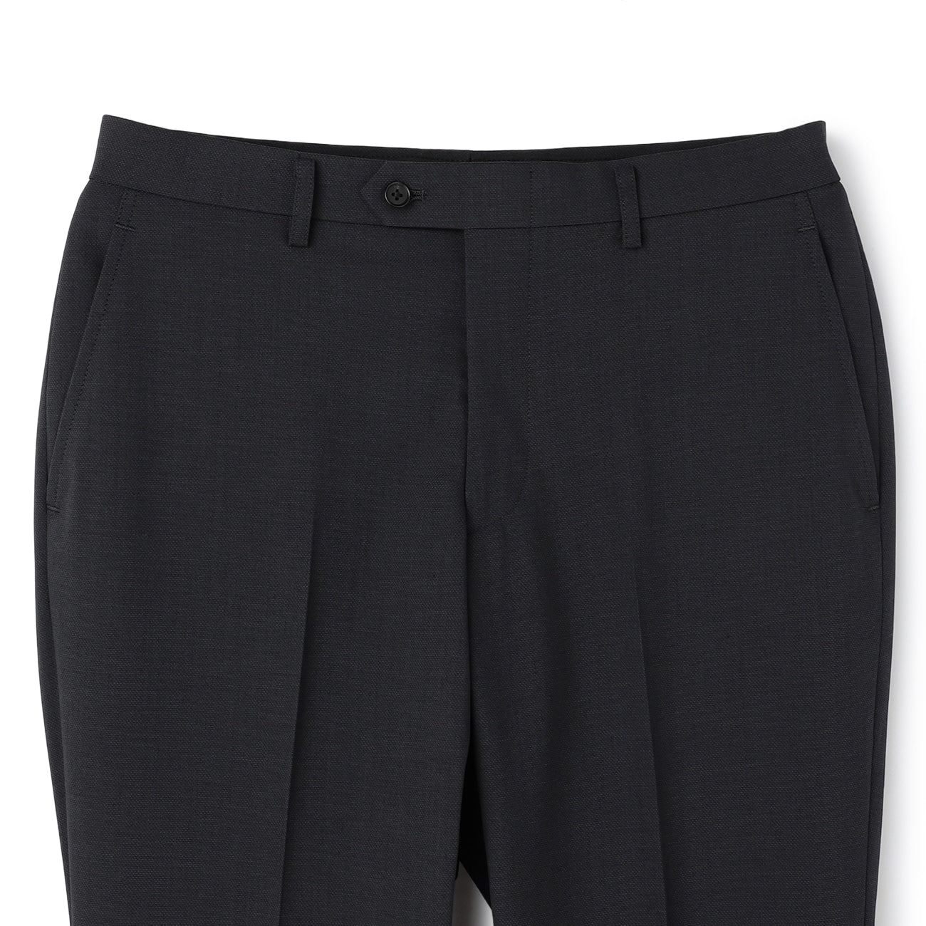 西装外套肩膀略呈圆弧线条,穿着轻松不拘束。肩宽适中、腰部略为收窄,打造出自然立体身形。西装裤为低腰锥形设计,腰围不紧绷、锥形剪裁更有修饰腿型效果。