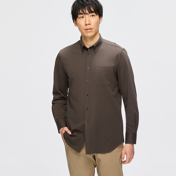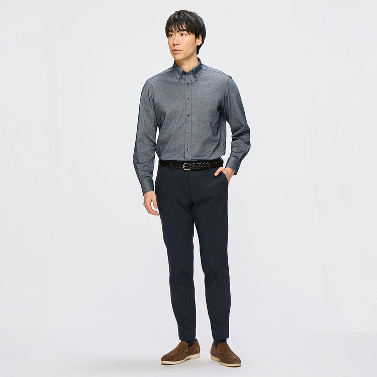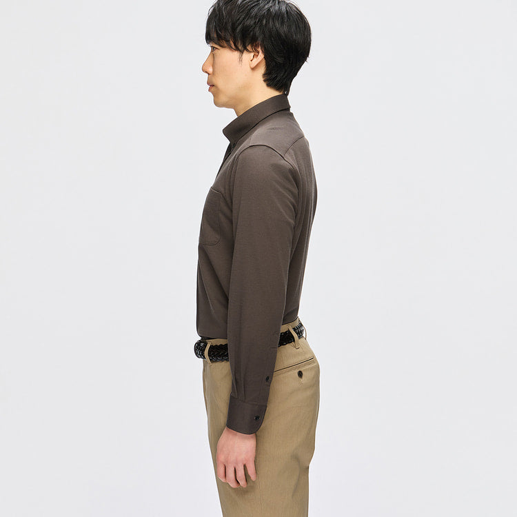 With a softly structured collar and placket, this button-down style helps maintain a clean collar shape even without a tie, creating a consistently neat and polished neckline.
