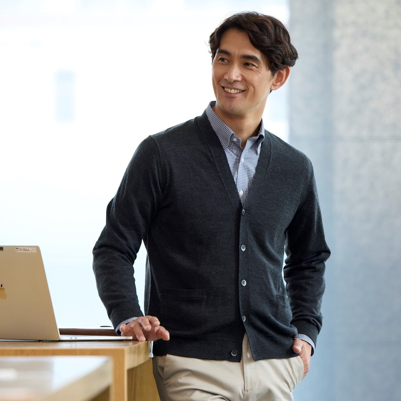 高密度针织工艺呈现光滑优雅质感。面料厚度适中,可舒适内搭西装或外套,毫无臃肿感。