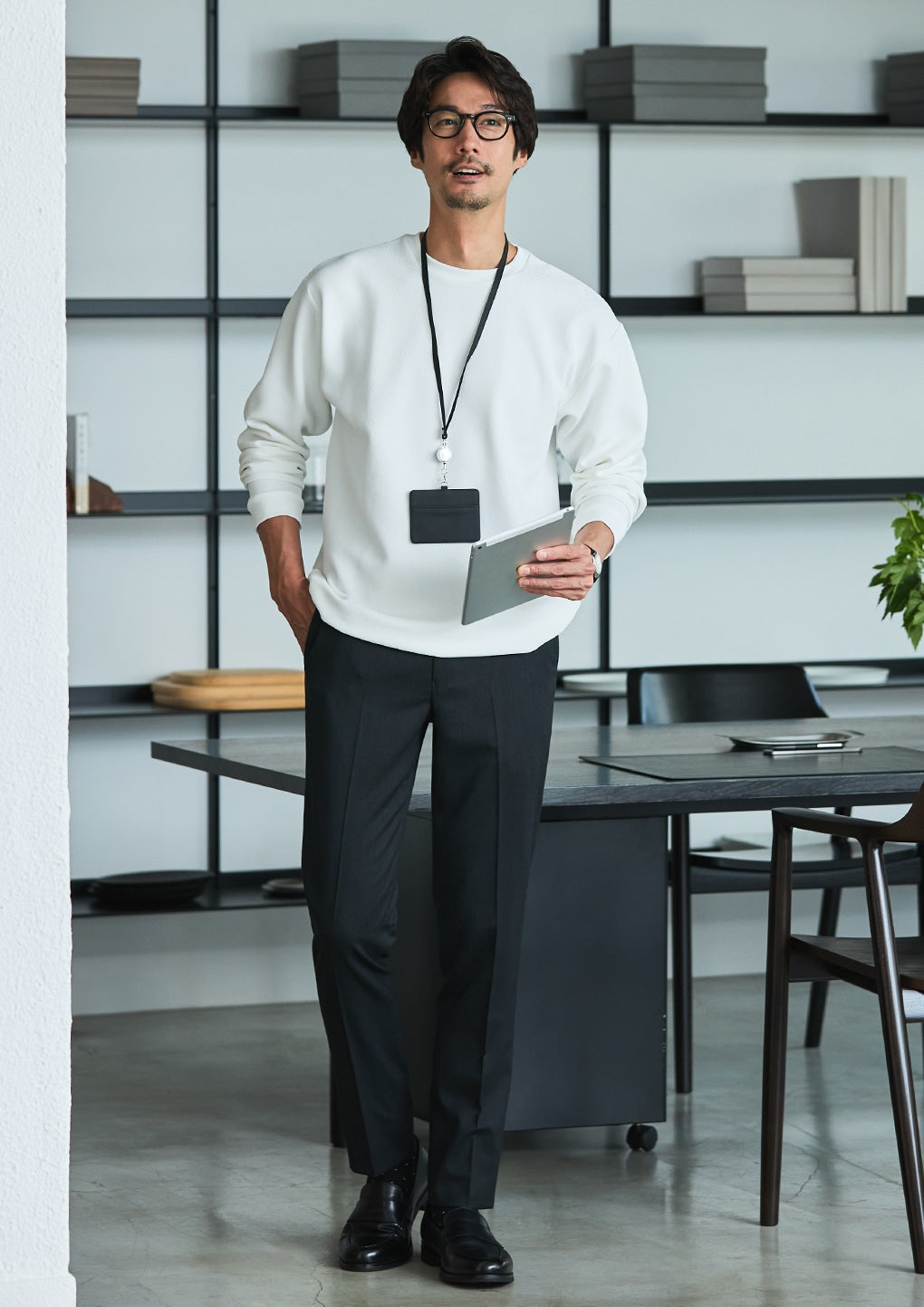 ・腰部松紧设计最多可伸缩4公分,随时保持舒适与俐落造型,开车、用餐后、工作久坐都能应对。