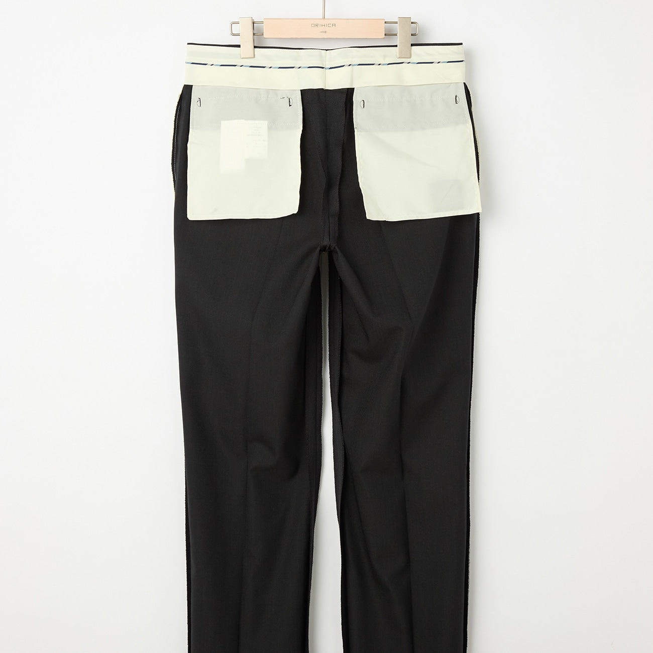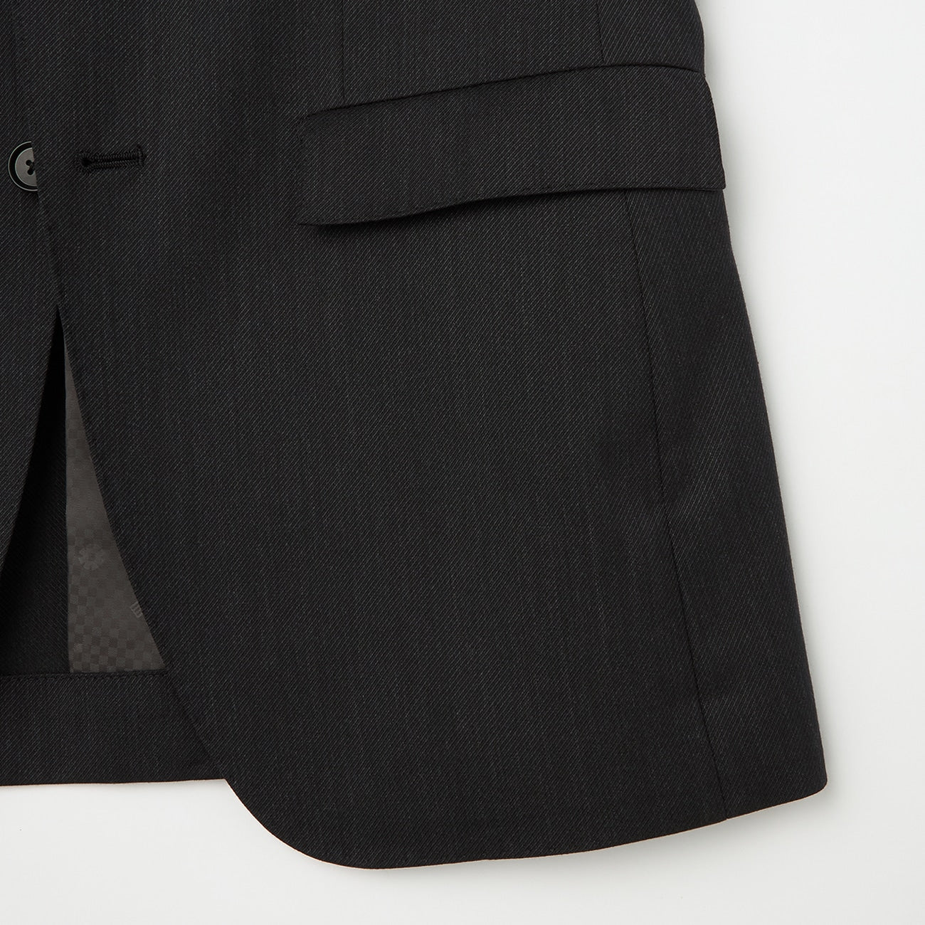・西装外套:2颗钮扣、背开中叉、袖口假扣眼、部分内里。西装裤:无摺