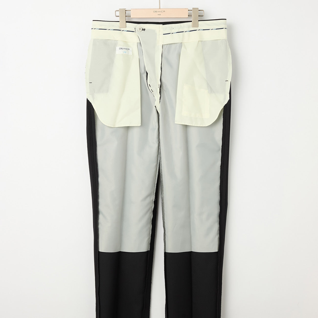 请注意:裤脚须另行包边车缝,请依您的需求裁改。