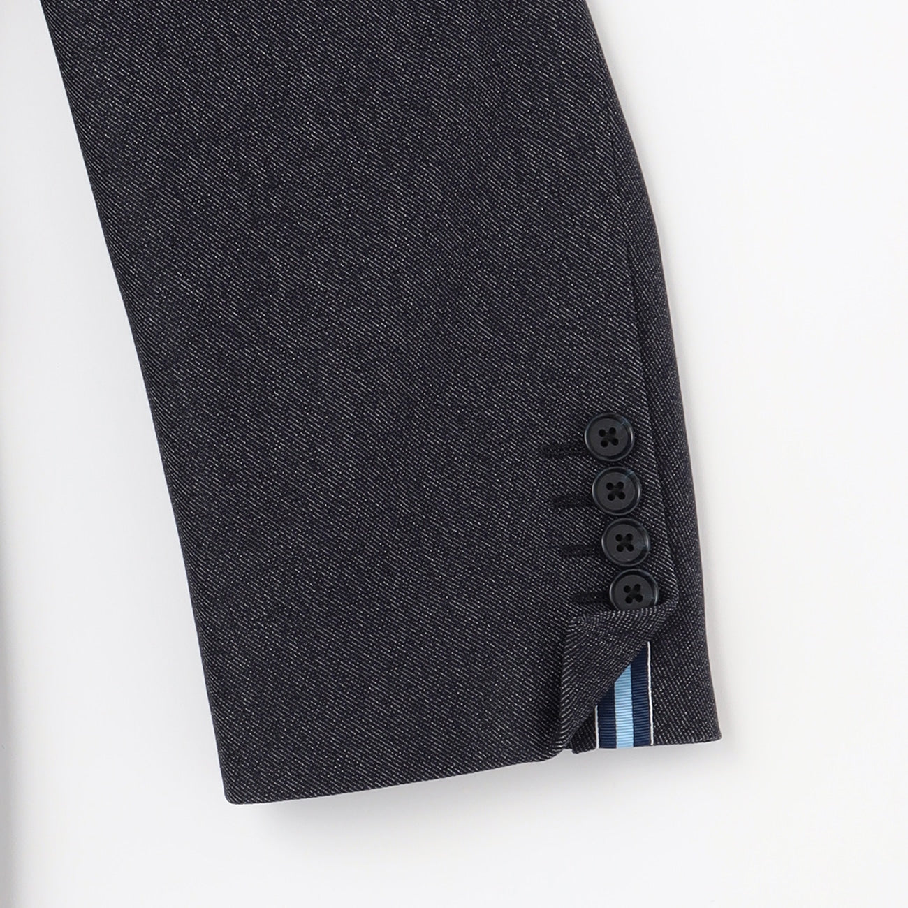 - 2-button, center vent, decorative sleeve buttons, half-lined.