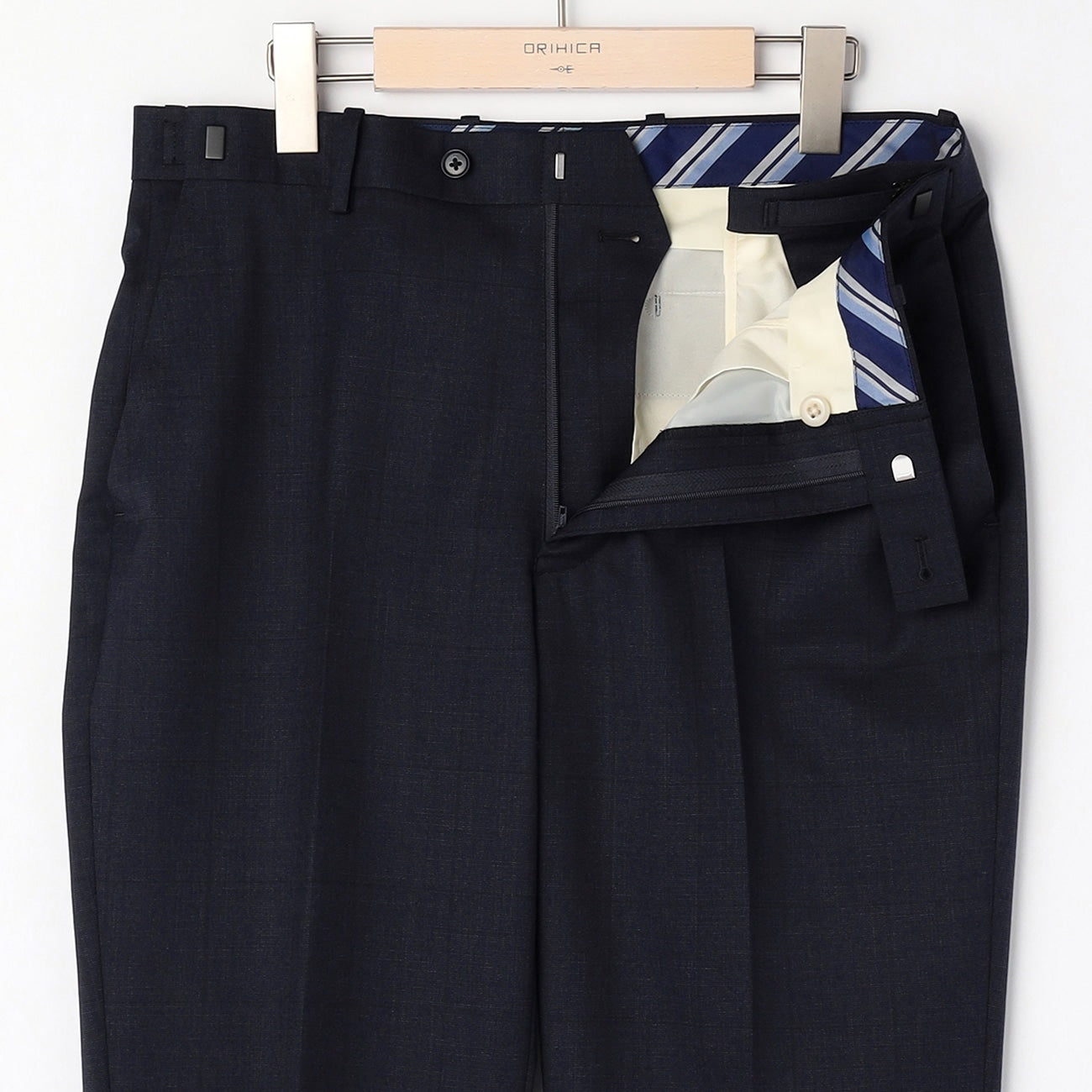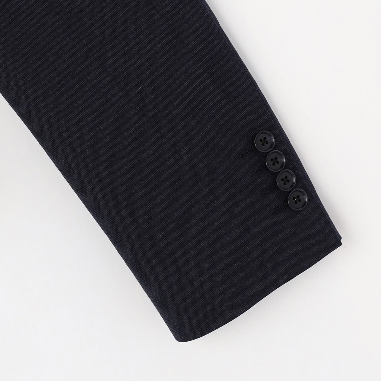 羊毛混纺 细格纹腰围可调式西装 深蓝