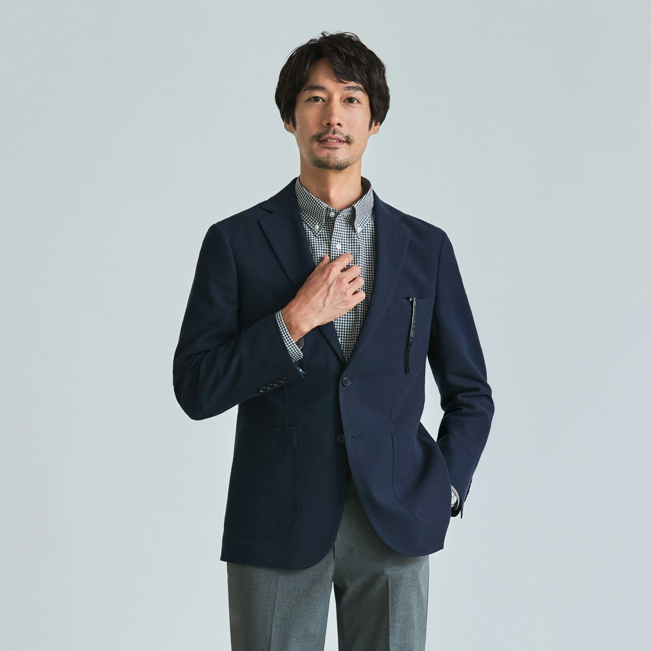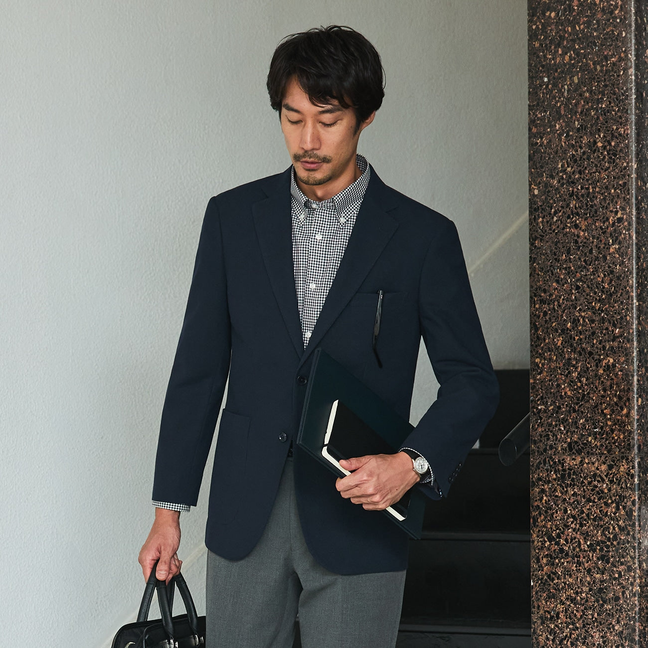 ・轻盈棉质与机能聚酯纤维混纺面料制作,简约实搭西装外套。