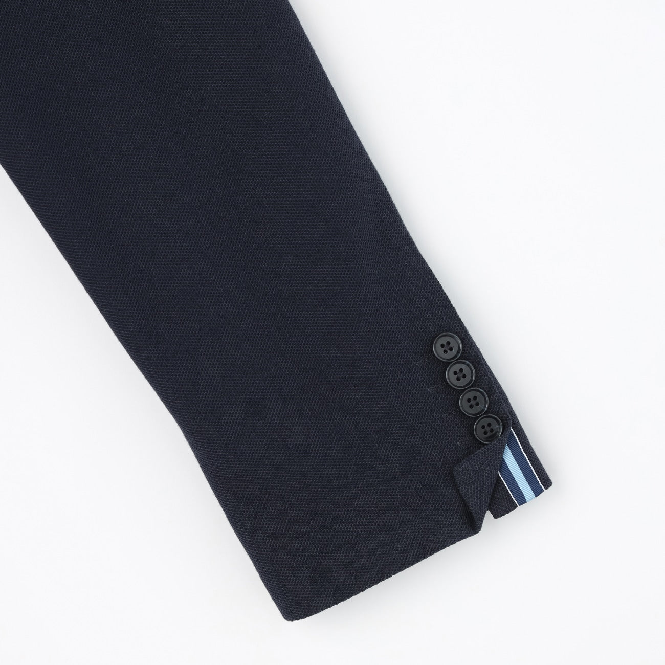 ・2颗钮扣、背开中叉、袖口假扣眼、半衬里。