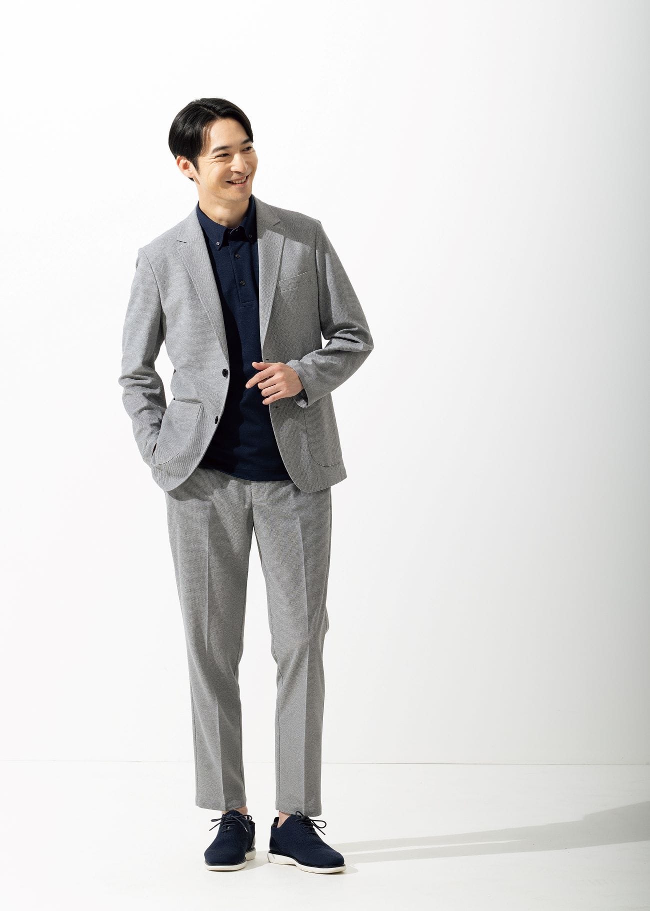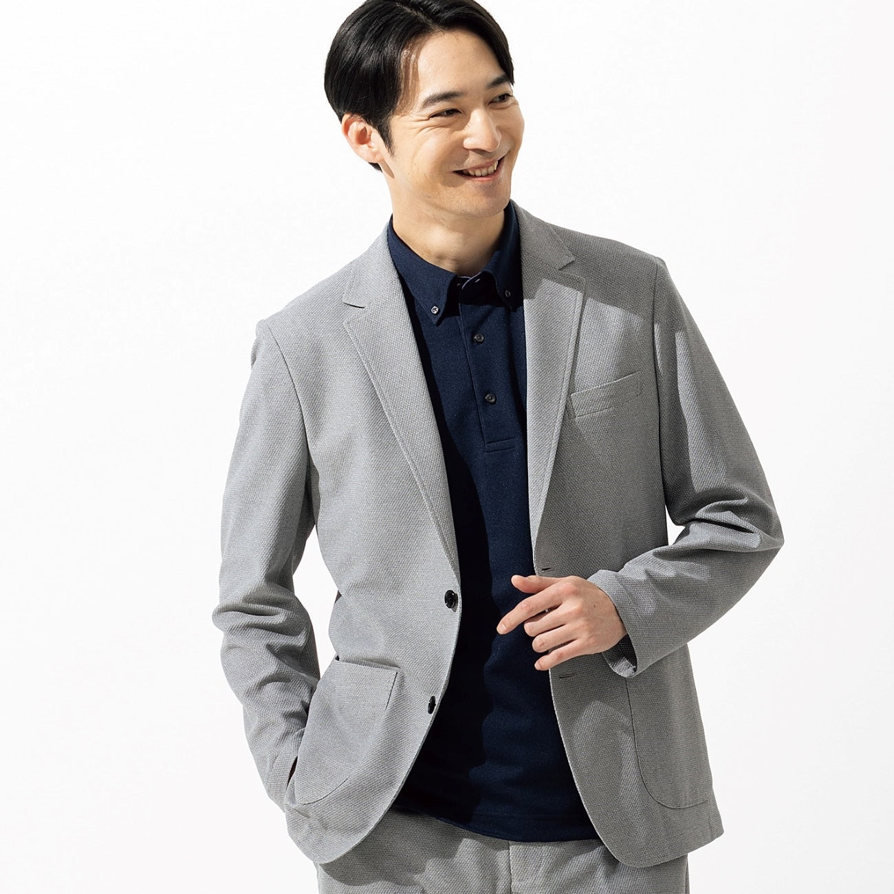 ・高透气针织素材,夏天也能舒适穿西装。