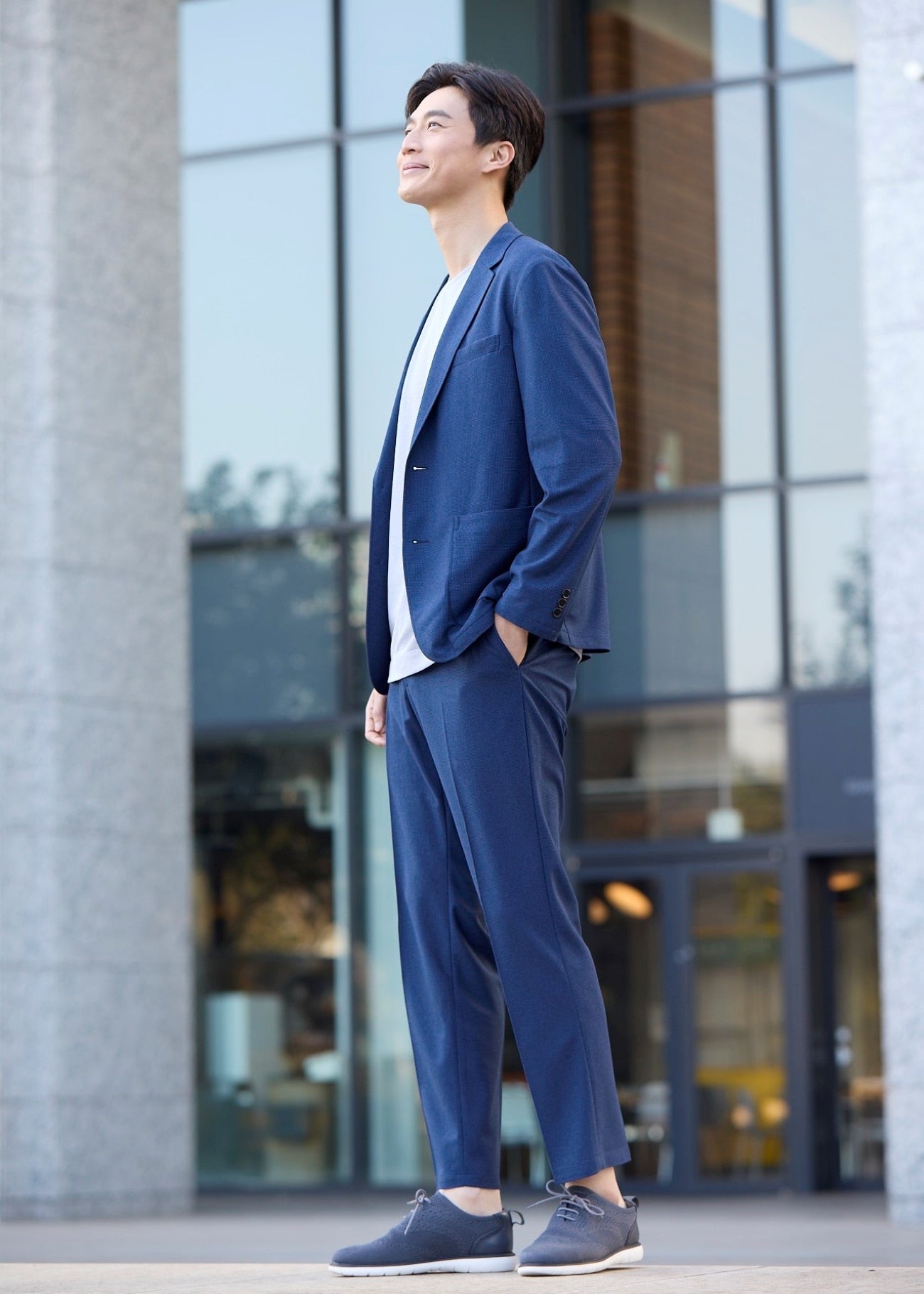 ・高透氣針織素材,夏天也能舒適穿西裝。