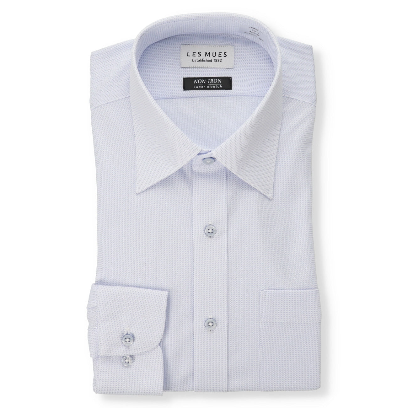 Easy-care non-iron shirt with super stretch material for comfortable movement.