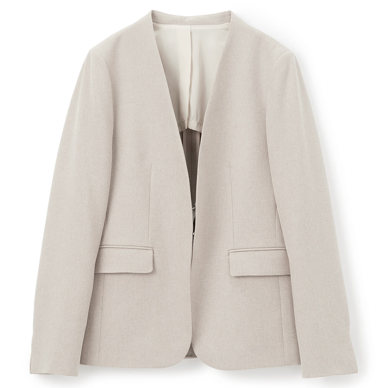 弹力混纺无领外套  米色_01