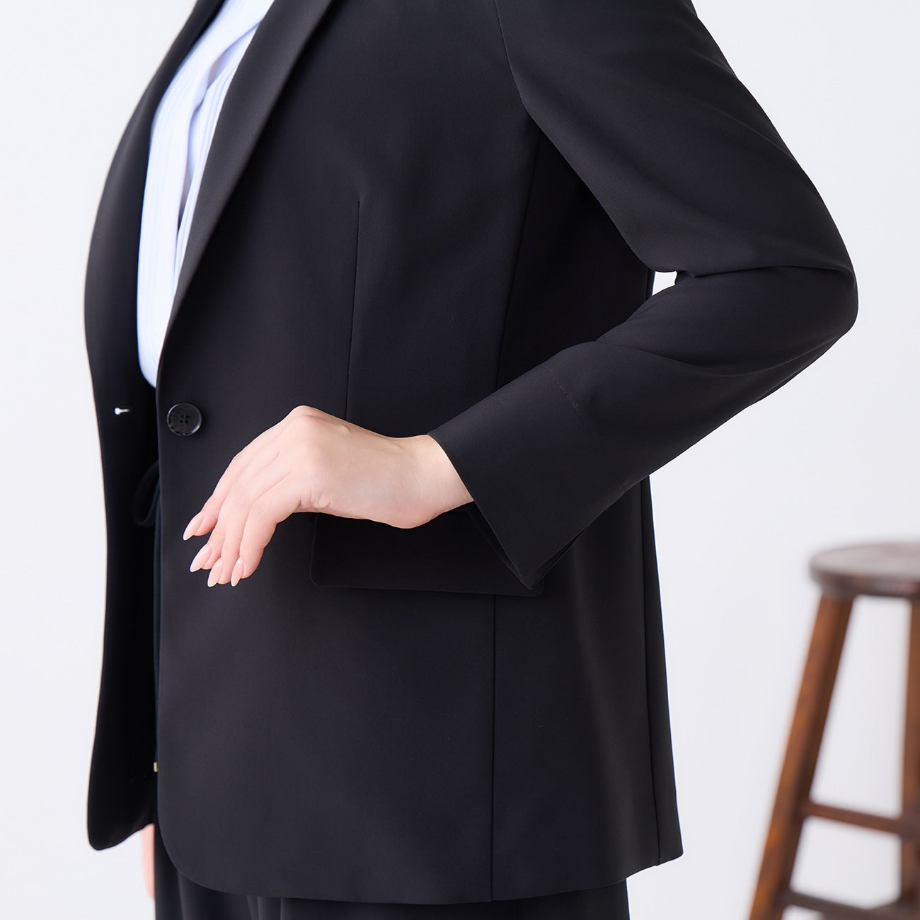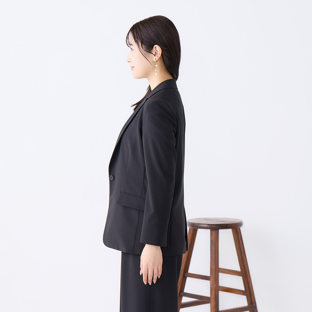 Drape stretch tailored jacket with a mature and sophisticated look
