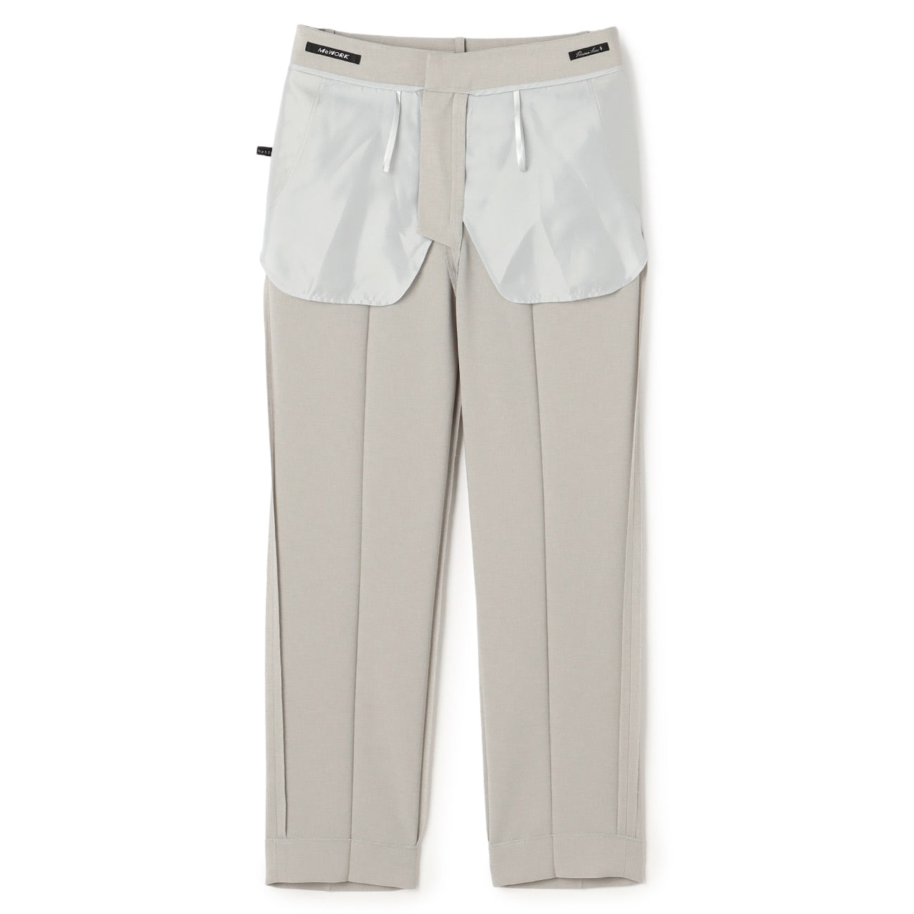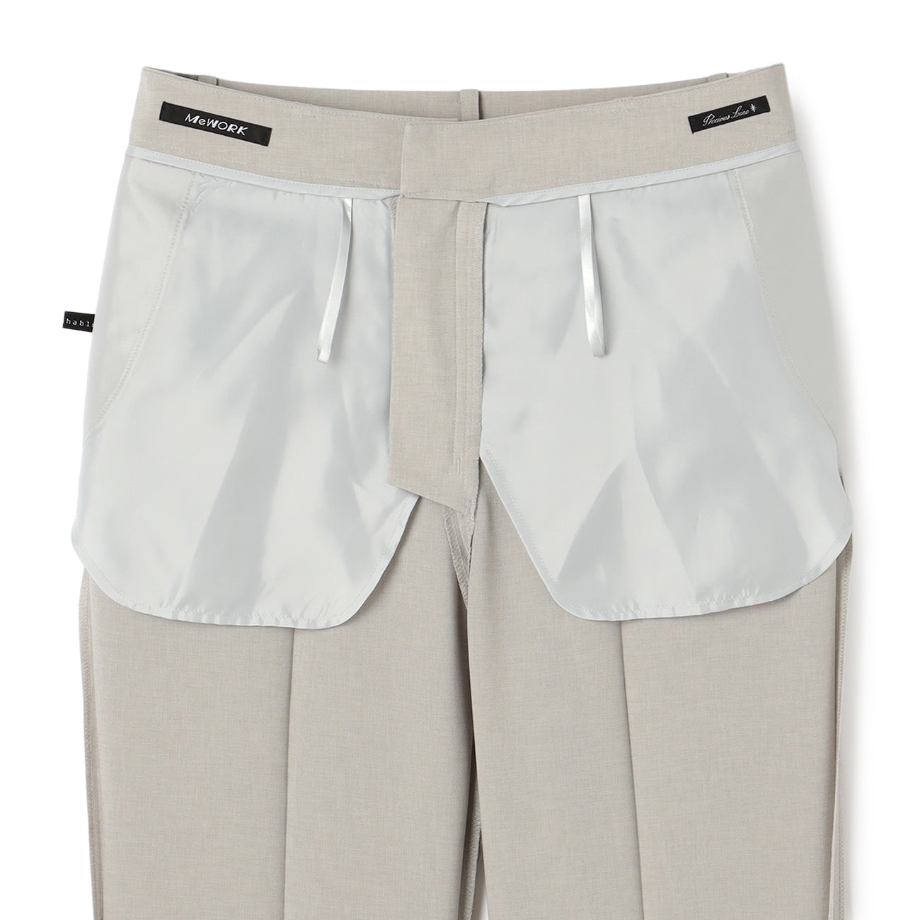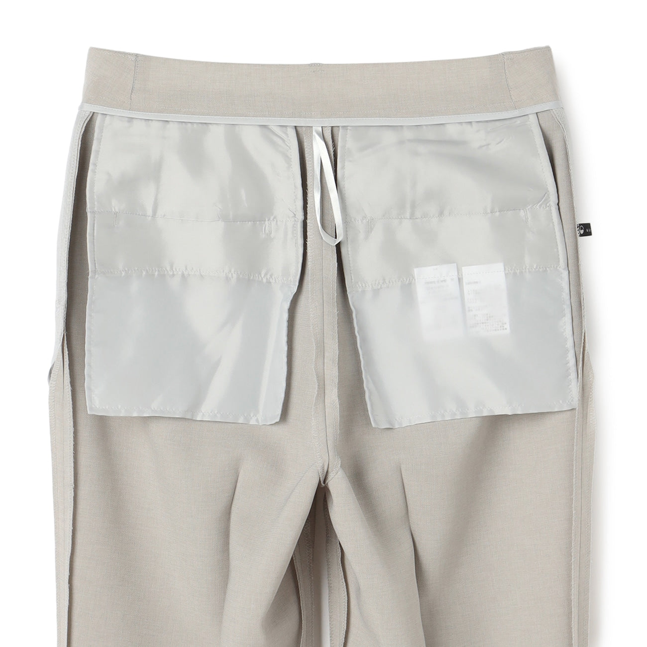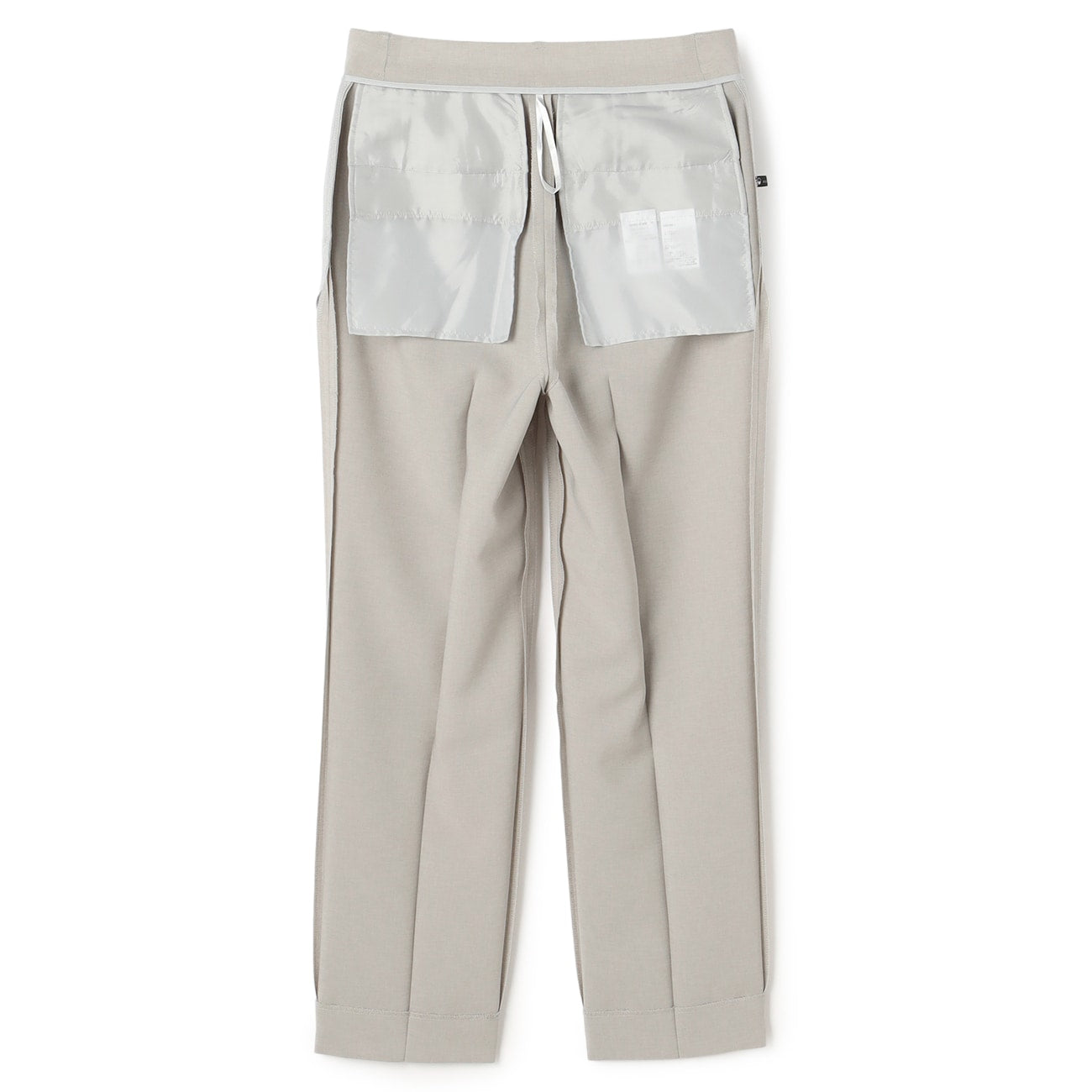 直筒西装裤/裤脚已包边/腰部、后臀有口袋/腰围松紧带设计