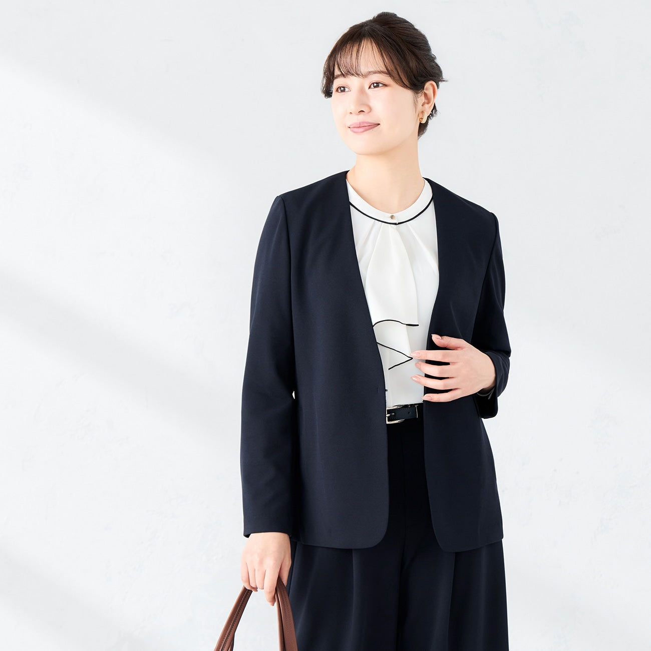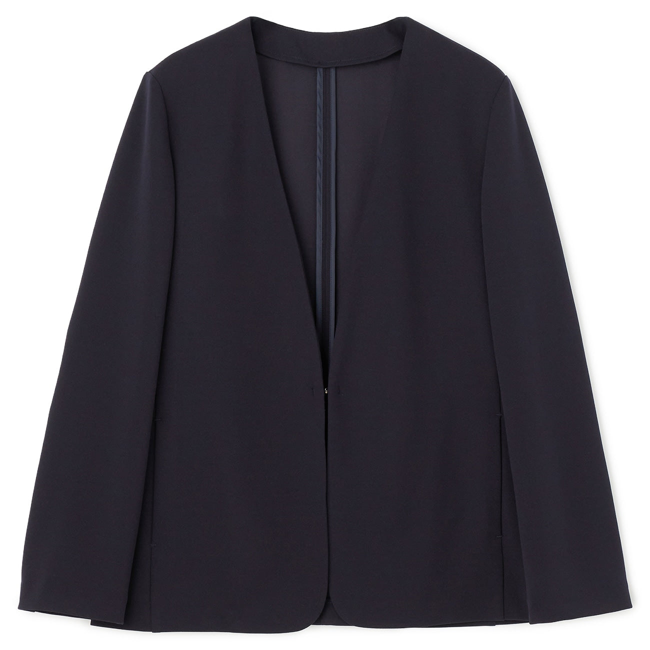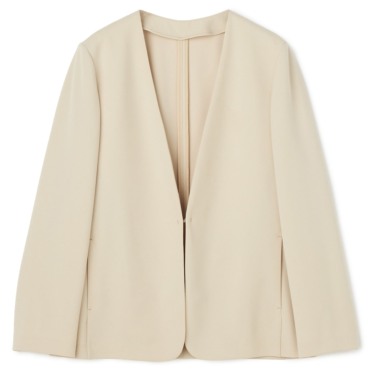 无领西装外套/钩扣设计/无衬里/腰侧口袋