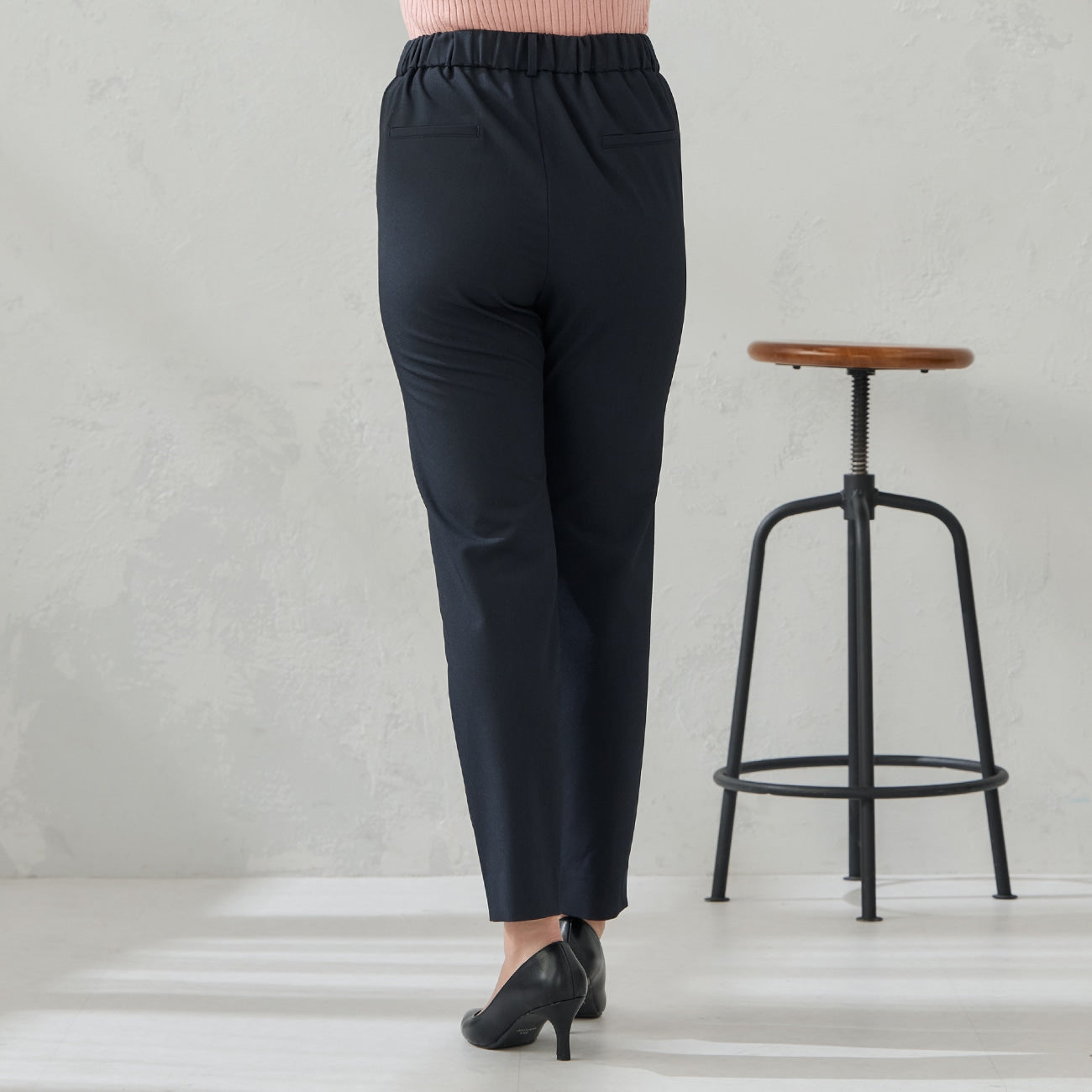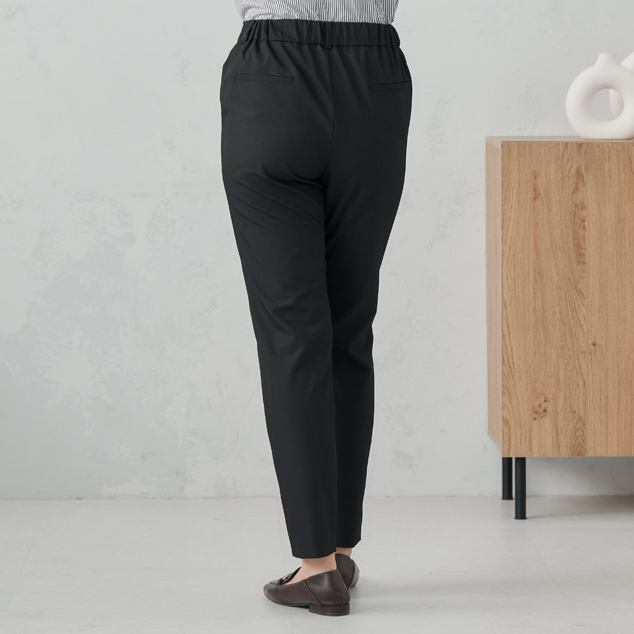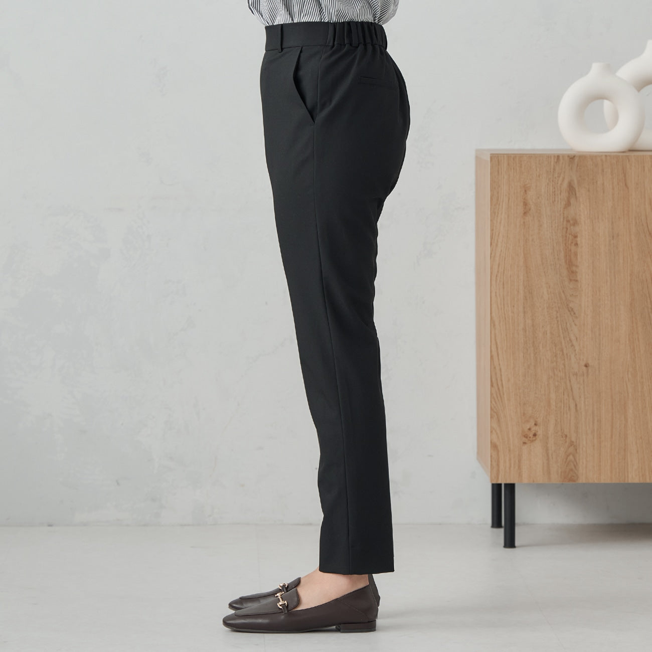 九分西裝褲/無內裏/腰側有口袋(後臀裝飾性口袋)/腰部鬆緊帶/褲腳已包邊