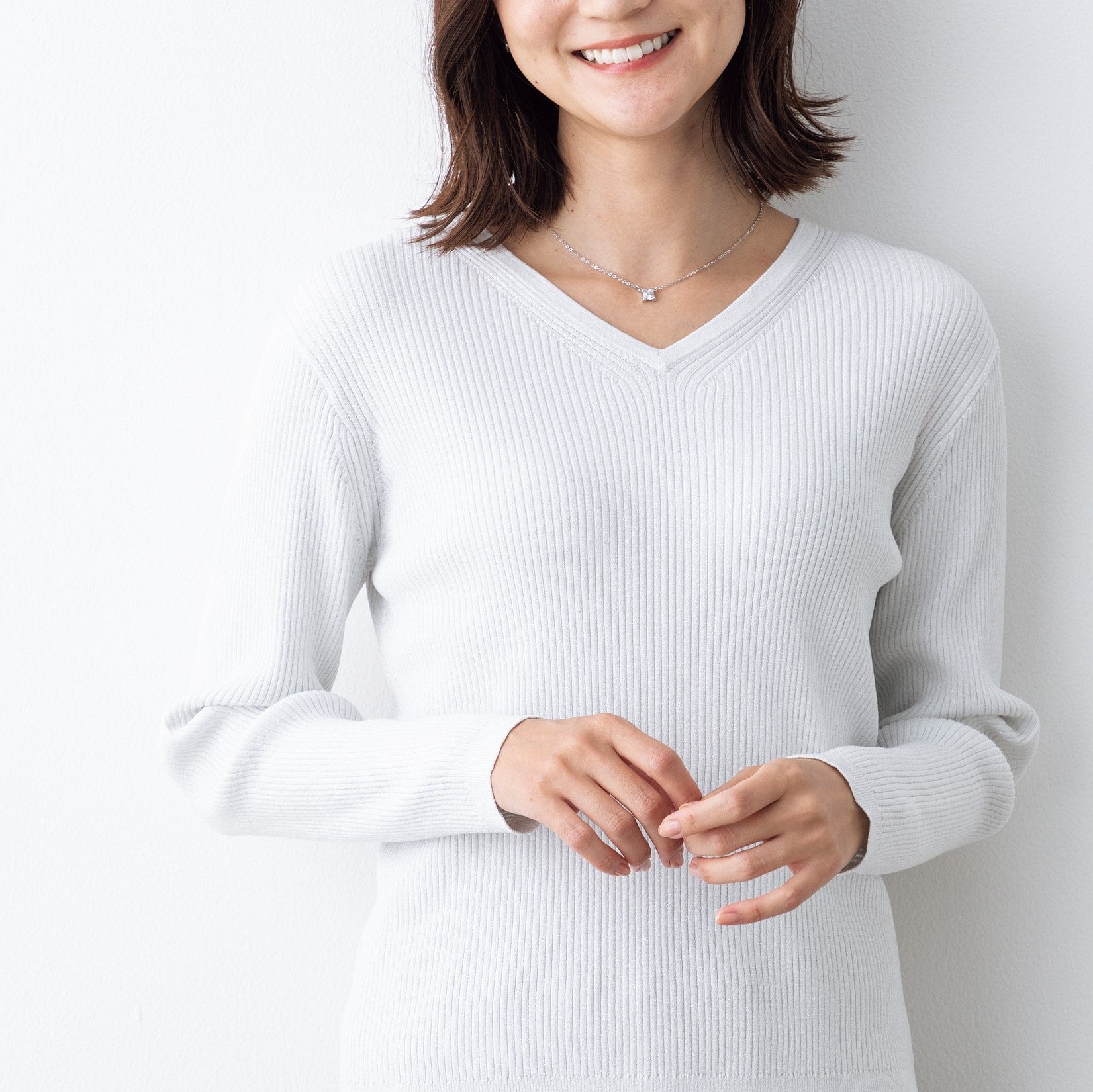 -V领 编织,闪耀优雅微妙的光泽