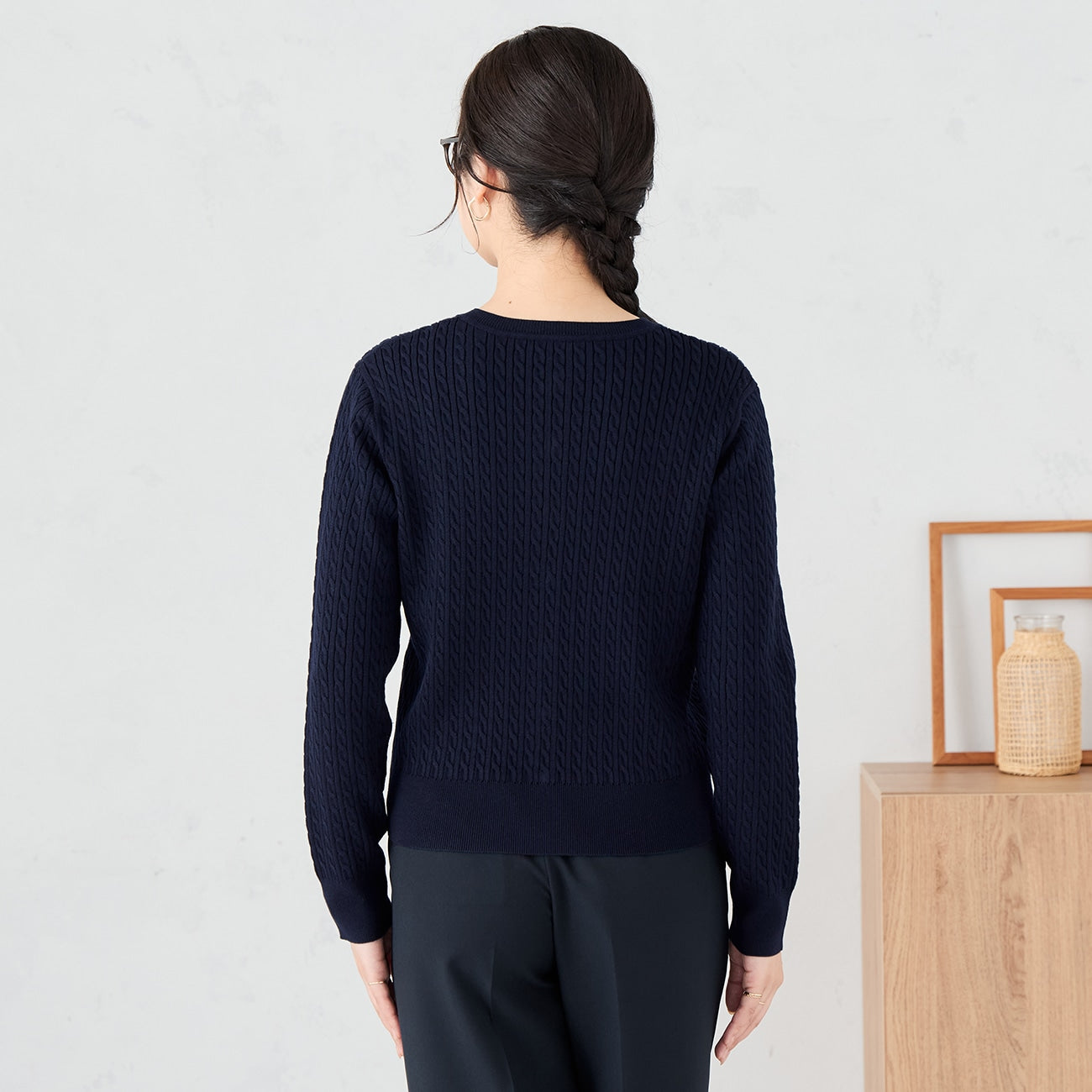 柔软的 3D 线形图案,细致的编织和金色纽扣点缀其间。只需将它叠穿即可提升您的着装档次,或者像套头衫一样扣上钮扣,就能彰显个性。