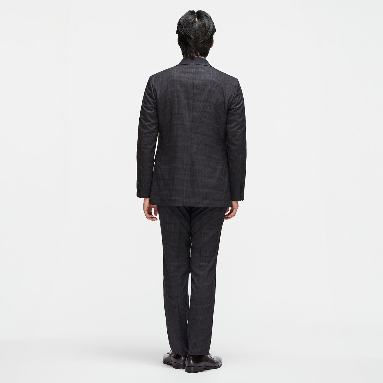 西装外套肩膀略呈圆弧线条,穿着轻松不拘束。肩宽适中、腰部略为收窄,打造出自然立体身形。西装裤为低腰锥形设计,腰围不紧绷、锥形剪裁更有修饰腿型效果。