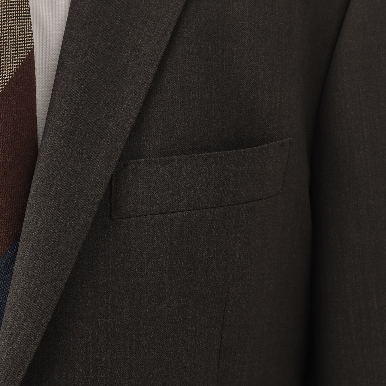 西装外套:背开中叉、半衬里、AMF缝线、多个口袋