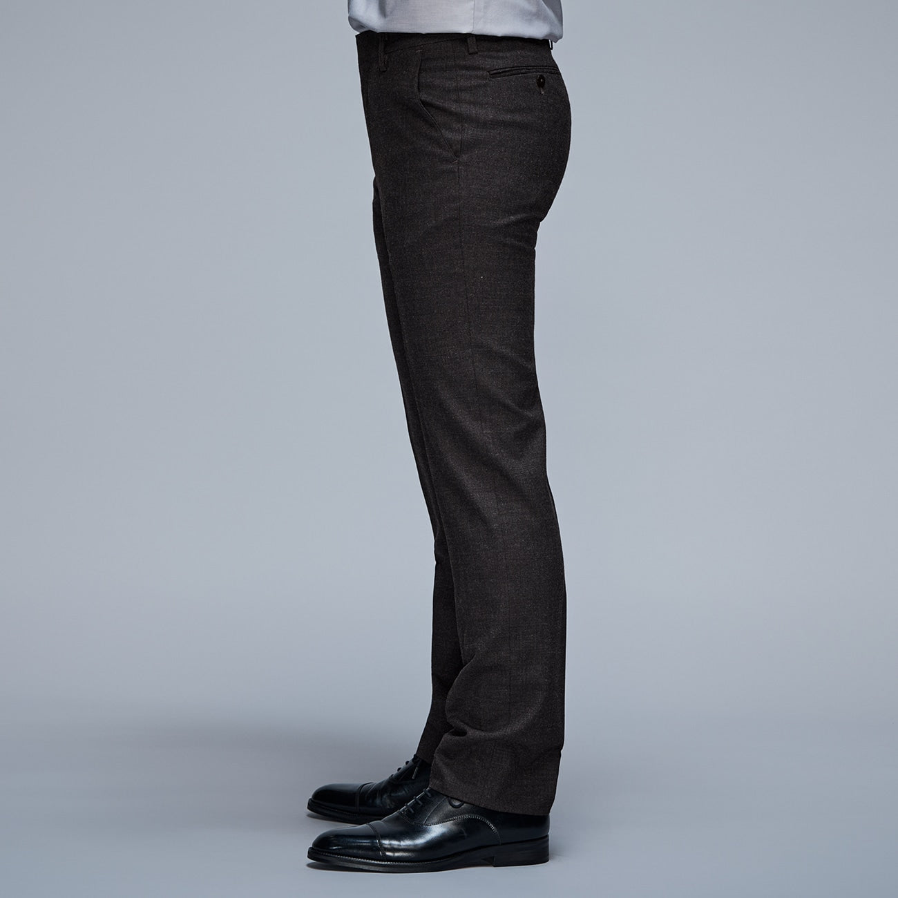 Eminent 长崎工厂的能工巧匠精心制作的休闲裤,工序多达 123 道。经过比平常多 4 倍的压制工序,打造出具有舒适臀部和大腿空间的三维轮廓。