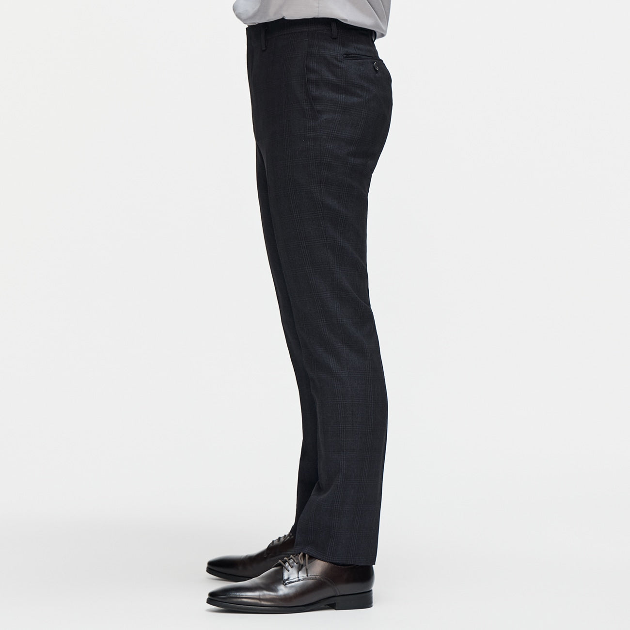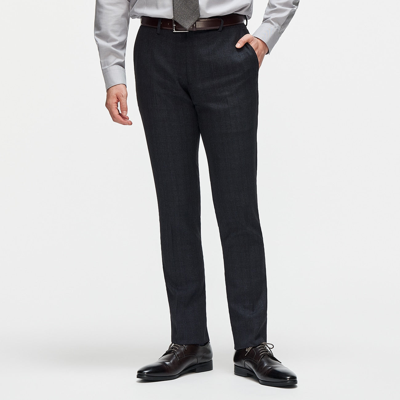 可机洗免熨烫 弹性格伦布锥形裤 -深蓝
