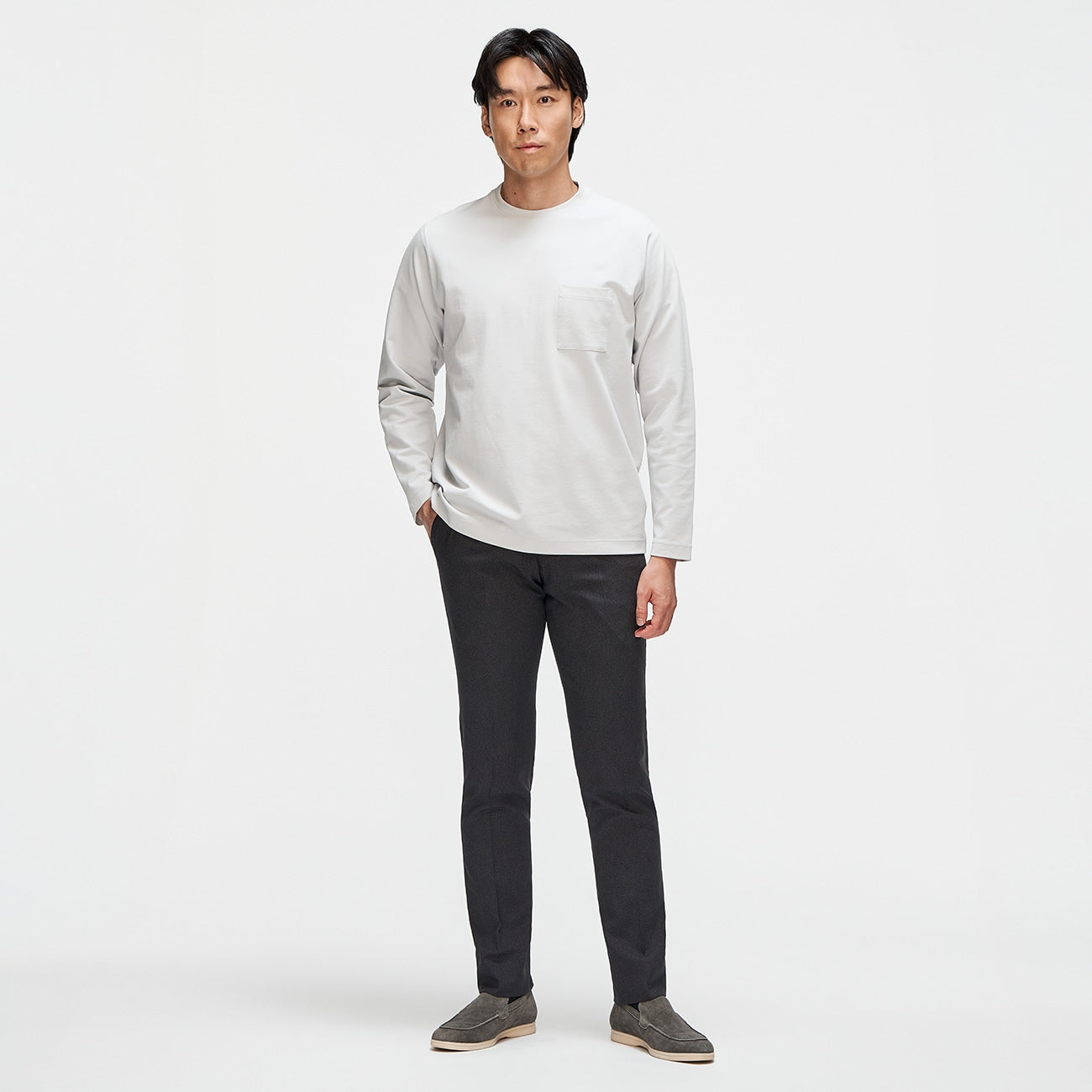 可机洗免熨烫 Stretch针头花纹 锥形裤 -灰