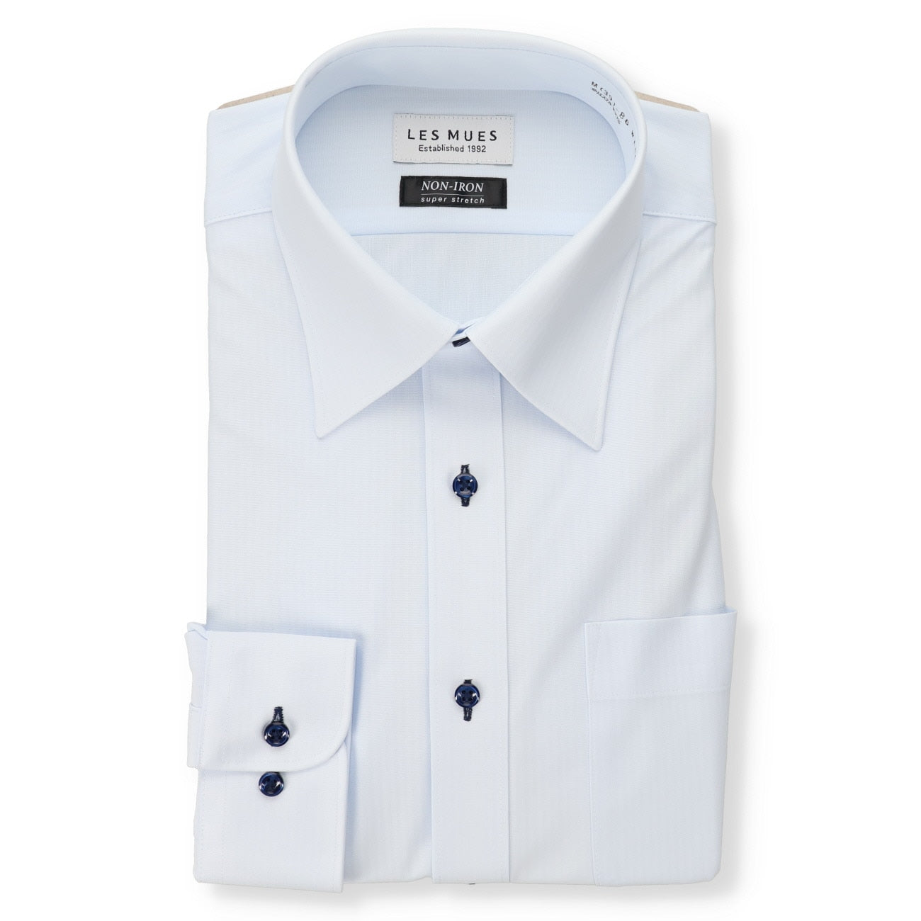长袖、标准领、附左胸口袋。