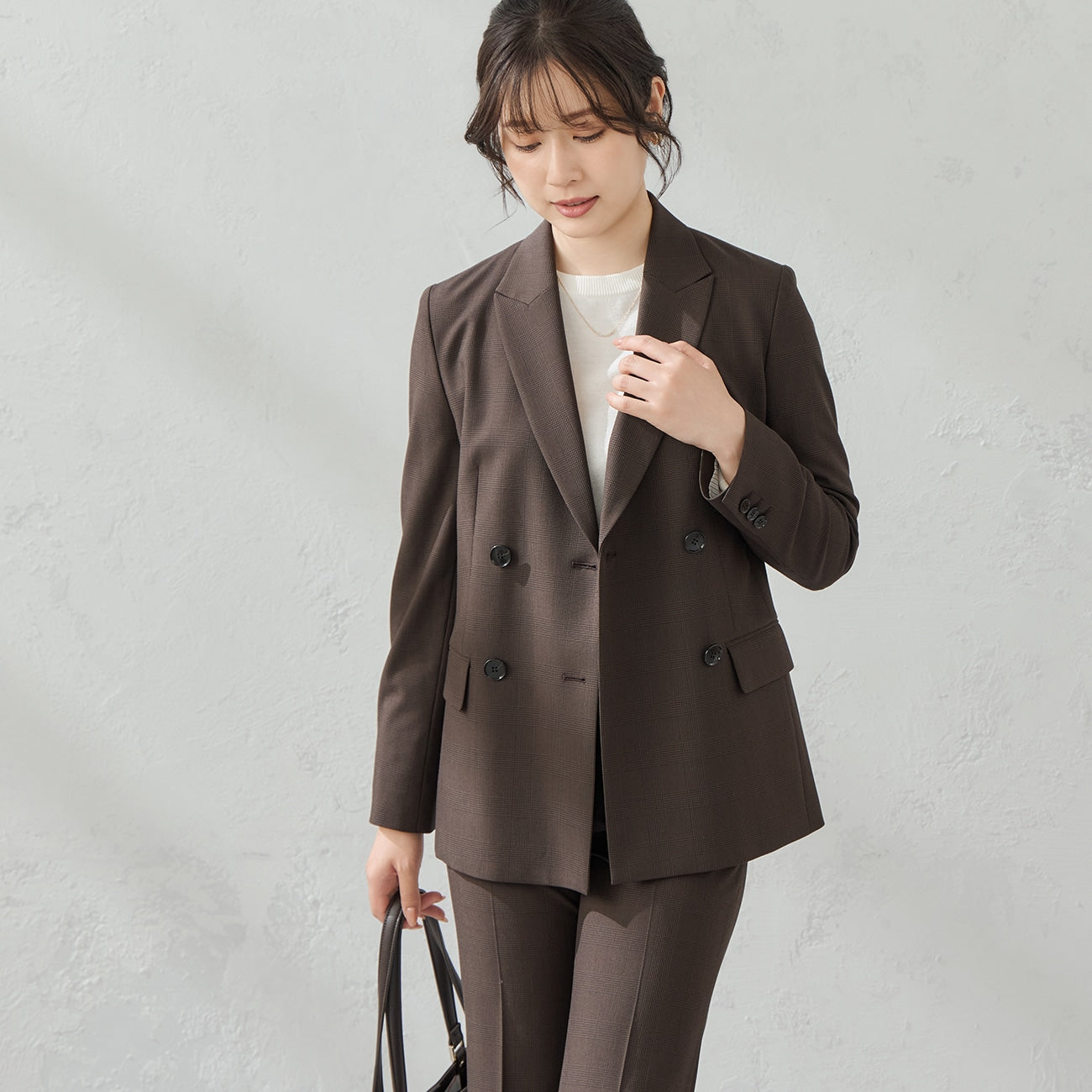 360°弹力修身 微喇叭设计千鸟纹西装裤