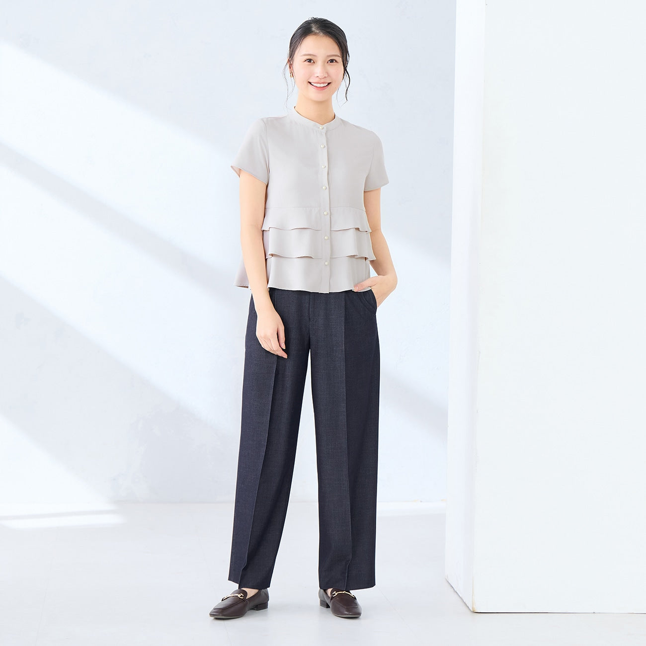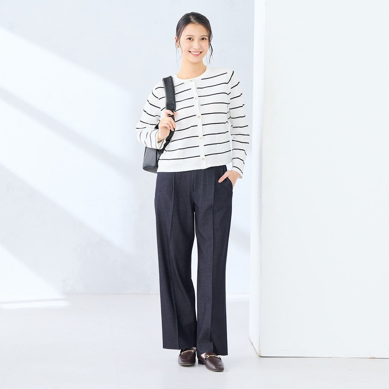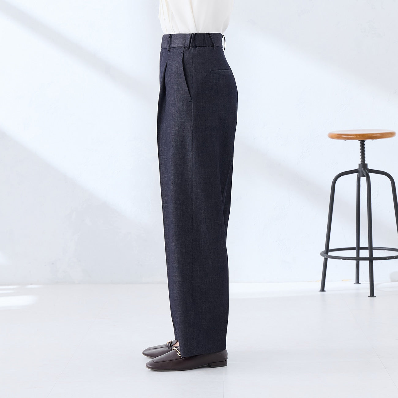 ・恰到好處的寬鬆度,讓寬褲從臀部往下垂墜,呈現筆直線條。