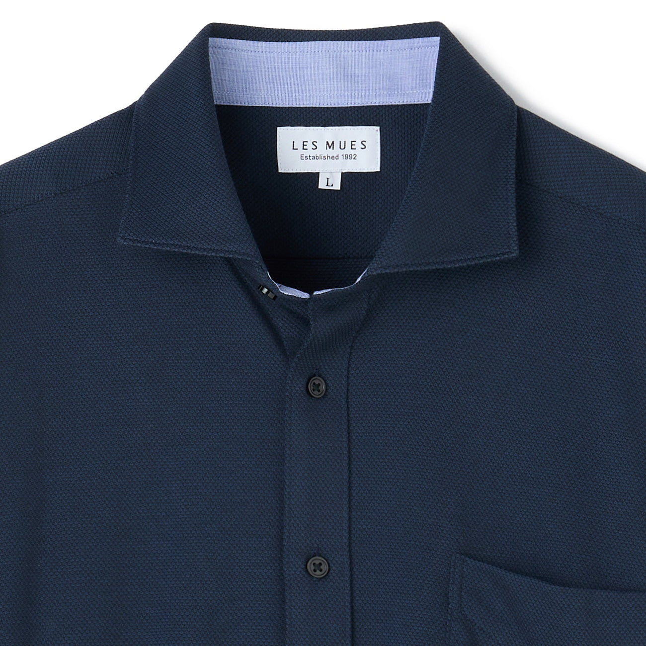镂空设计,衣领角度大。即使解开梭织衬衫 的纽扣,衣领也能整齐地打开,在不佩戴领带的情况下也能营造出简洁的风格。