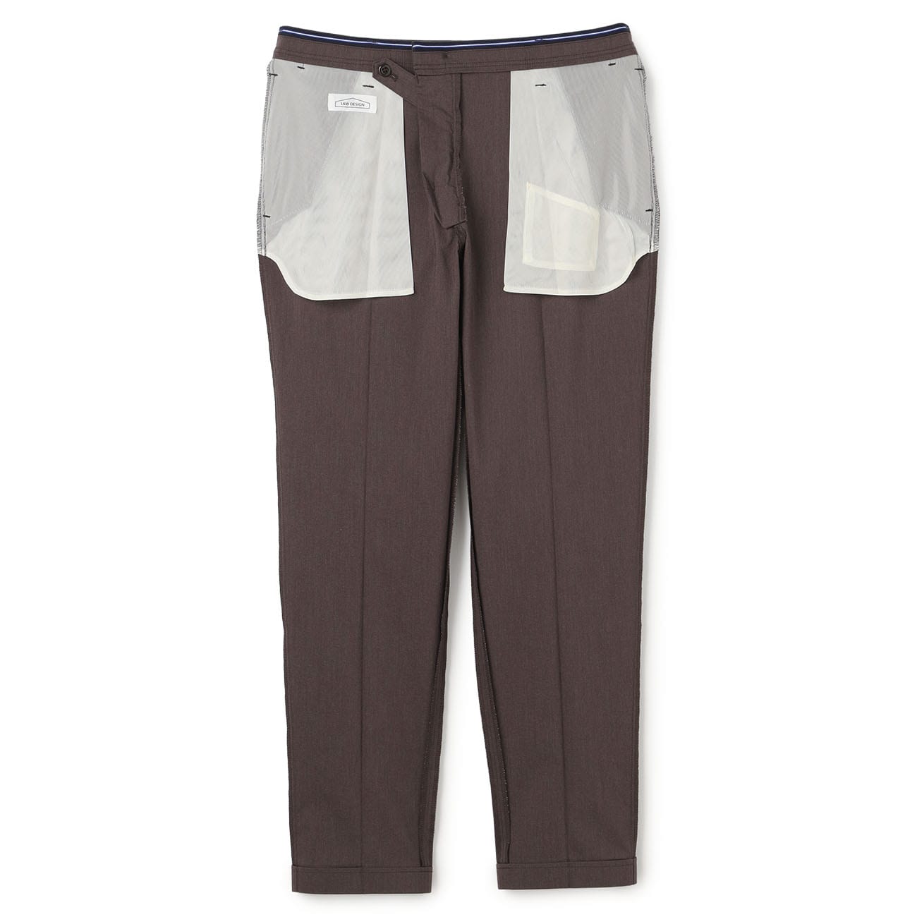 制作时已完成包边,不须另行修改,可直接翻折裤脚调整长度。