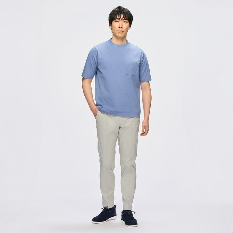 彈性布料與腰部鬆緊帶設計帶來舒適穿感,錐形褲設計讓腿部線條看起來更修長。