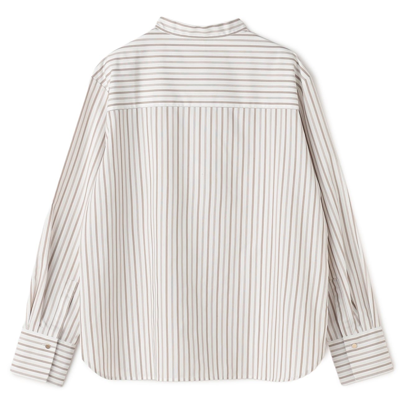 A refined band collar blouse that creates a sleek, elongating silhouette.